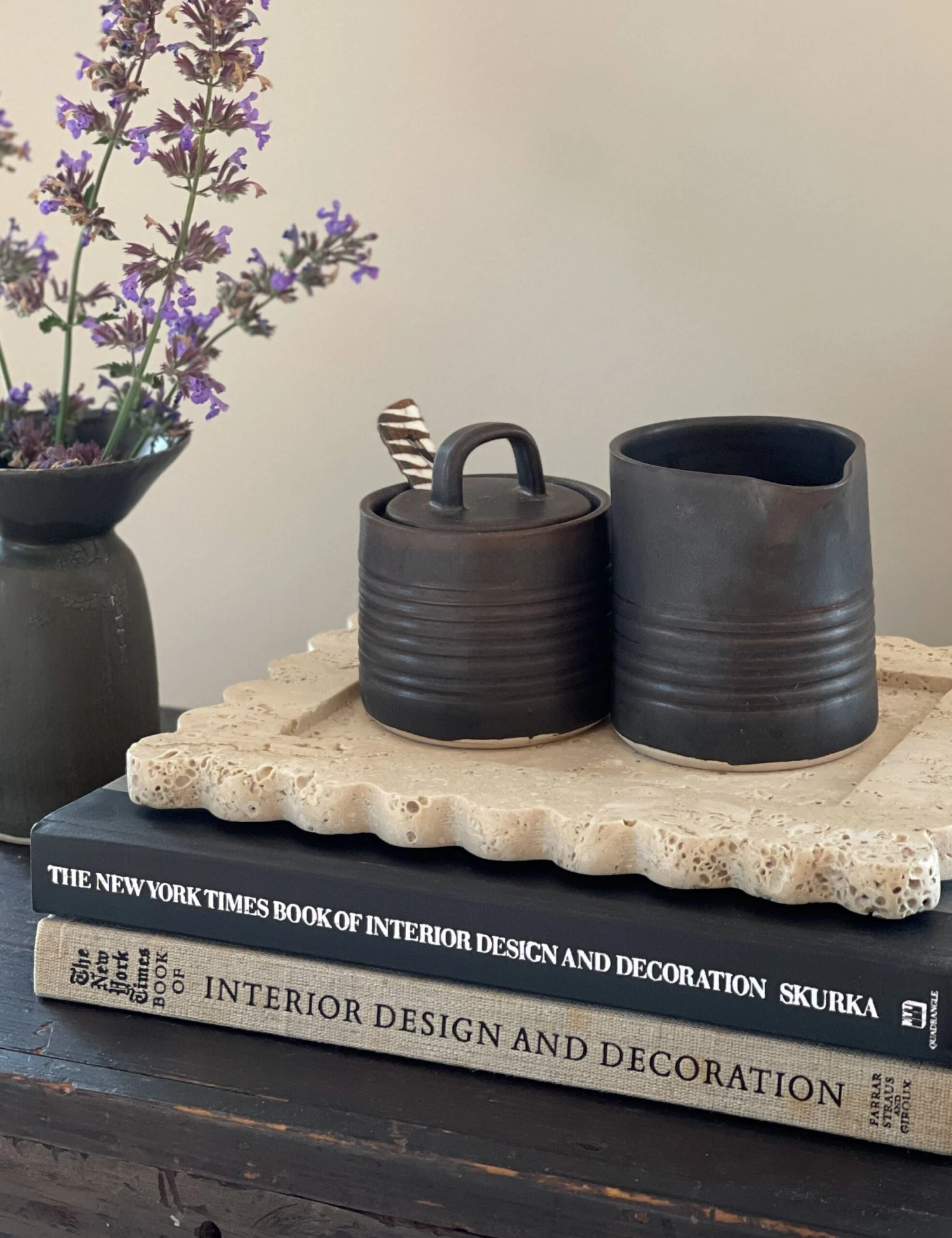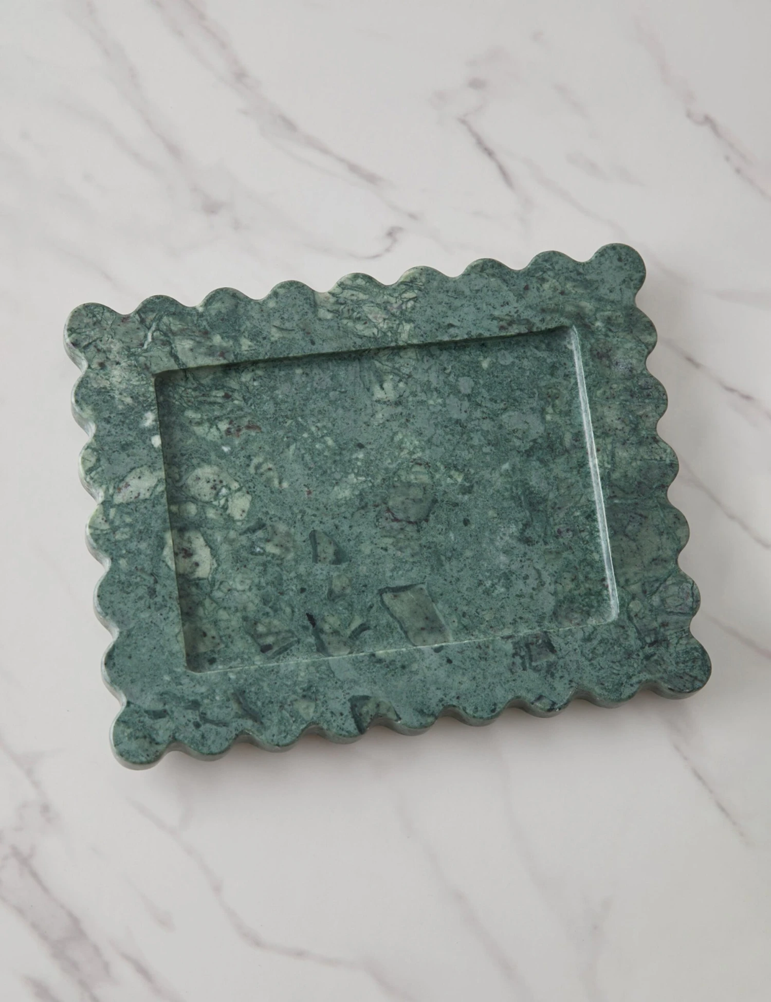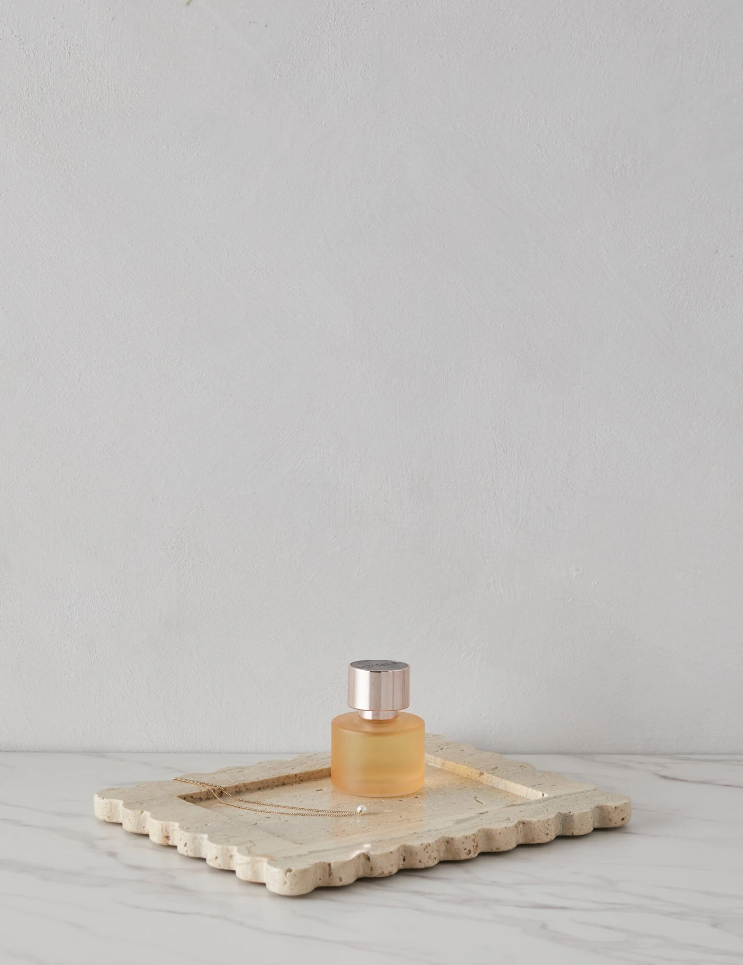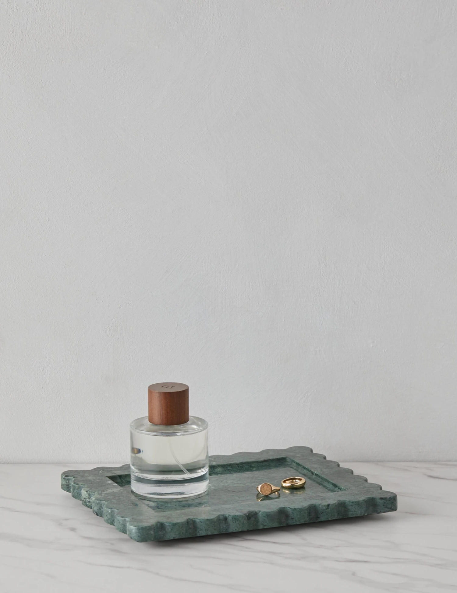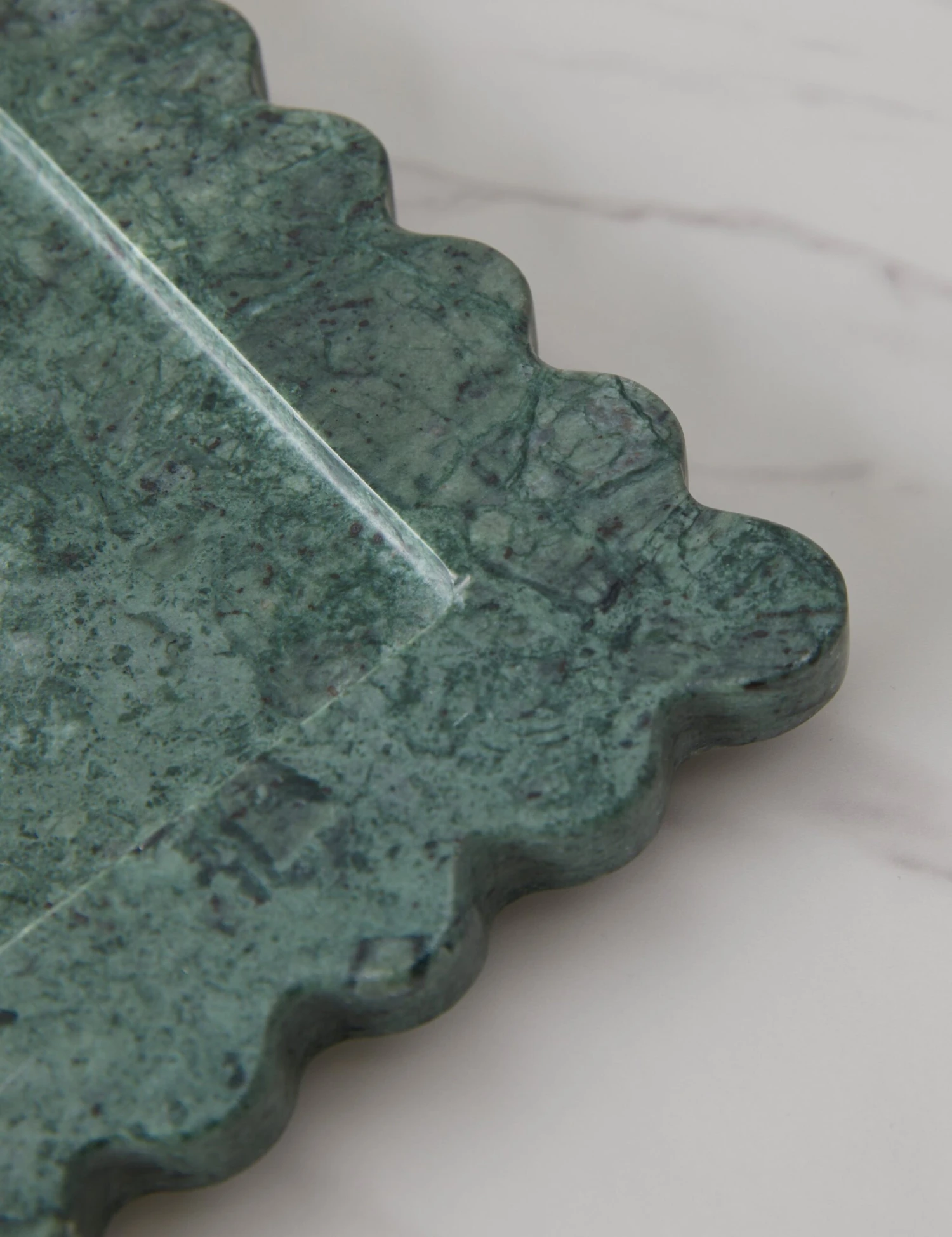 Anastasio Home works with craftspeople around the world to bring limited-run accessories and upcycled luxury goods to your home. The 810 tray adds a functional touch and sculptural appeal to any tablescape or counter. The scalloped form is cut from a single piece of stone and hand-finished in a stone atelier in Rajasthan, India. This heirloom-quality piece shows the unique marks and imperfections of the artisan’s process.
