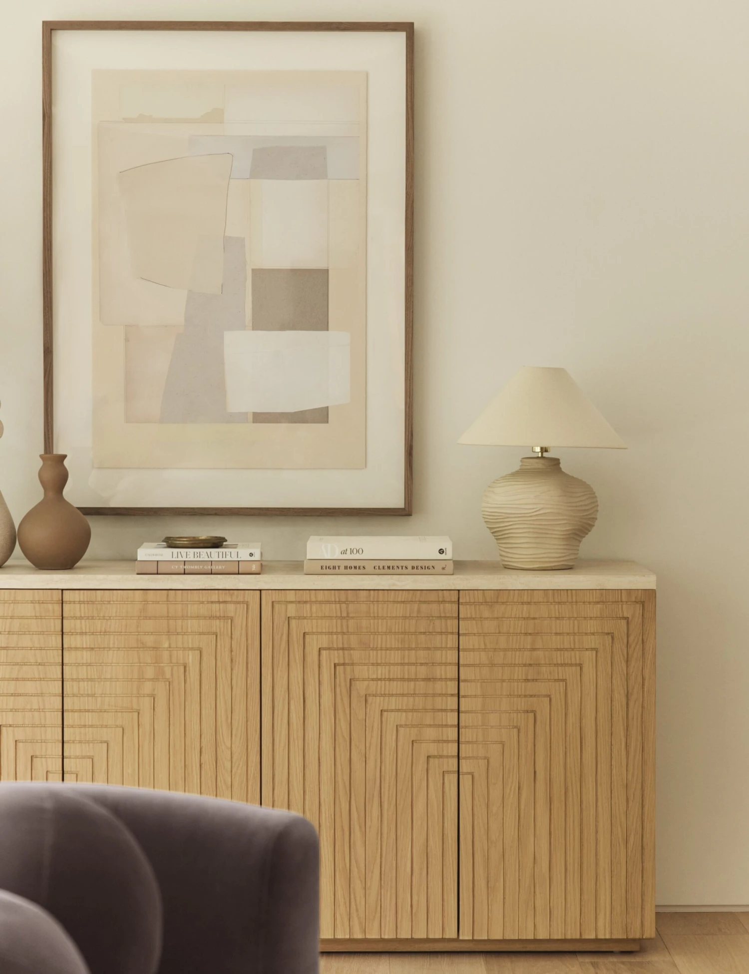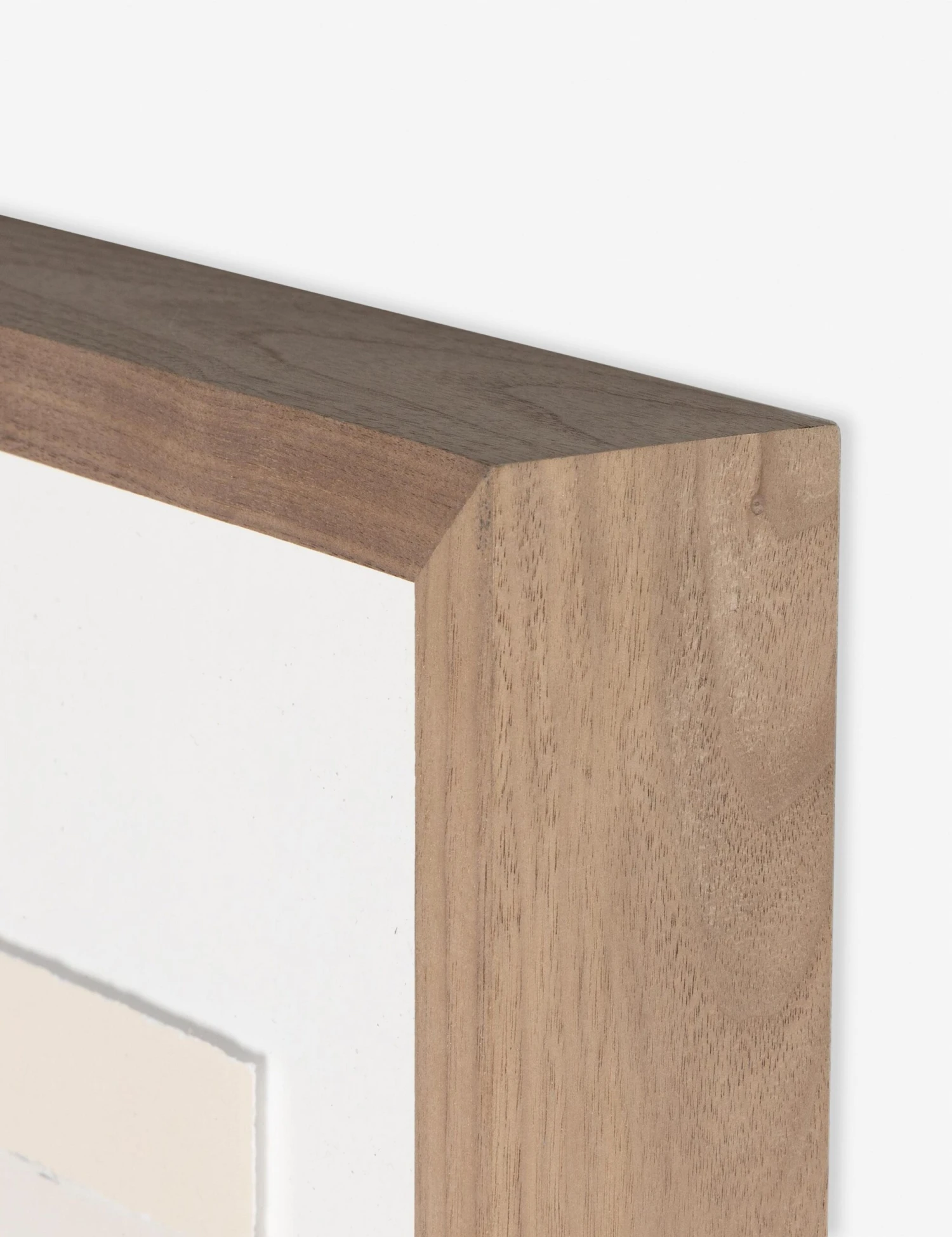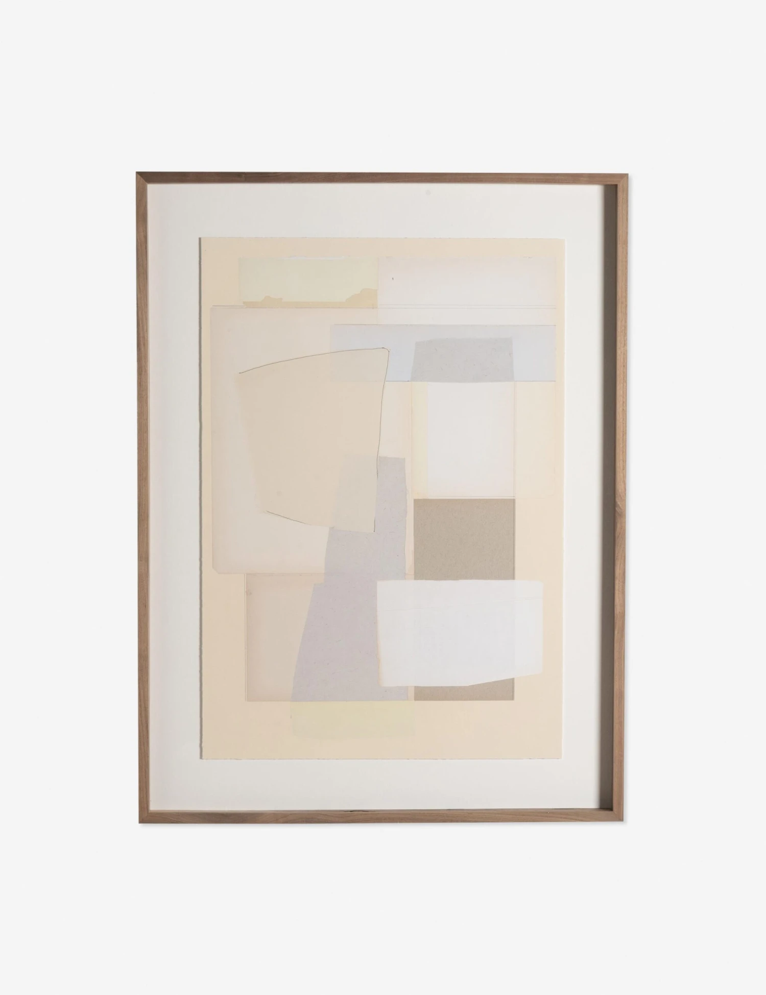 Amy Berlin transforms aged book pages and other found materials into unique wall art collages, balancing precise lines with marks of the mixed media process. In Abundant, an arrangement of irregular shapes creates a clean, layered composition. The soft tones offer a splash of color with quiet impact—perfect for a modern wall art collection.