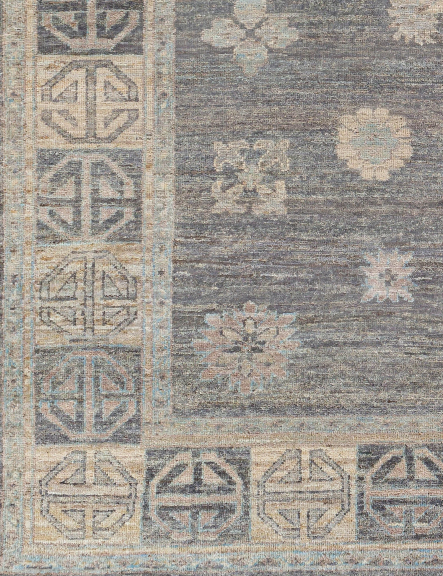 Style your home for lasting elegance with this hand-knotted rug. A modern palette brings a fresh feel to the rug’s traditional design—featuring a subtle fringe for a timeless touch. The low woolen pile offers a soft yet durable foundation that will elevate any space from the ground up.