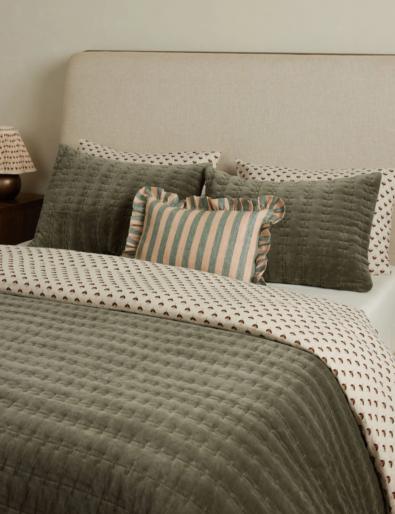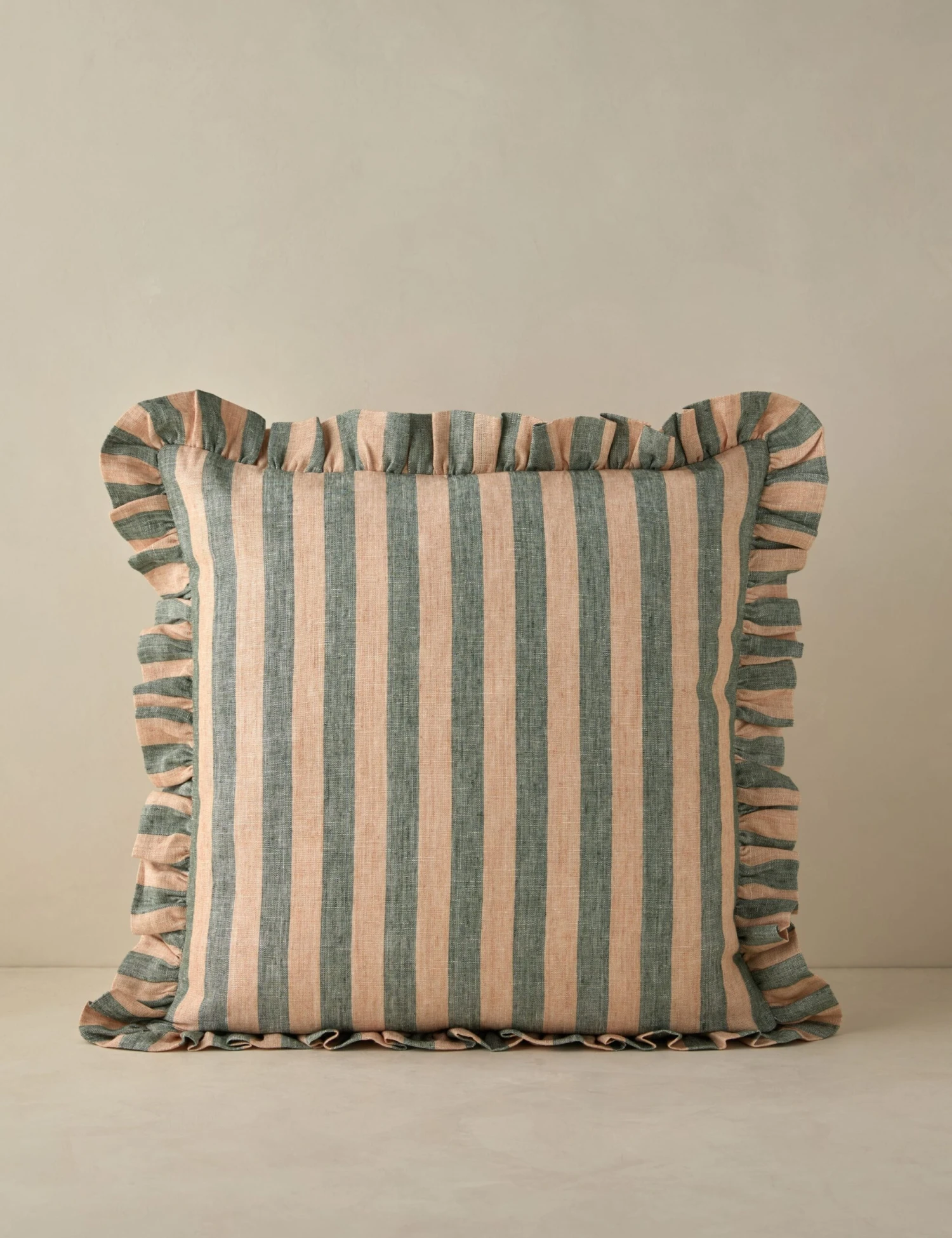 Add some volume and vintage flair to your throw pillow collection. Our Lita pillow features a subtle striped design with a ruffled flange for fresh pattern and texture in your curation. The linen offers a cool, crisp touch, perfect for everyday spaces.