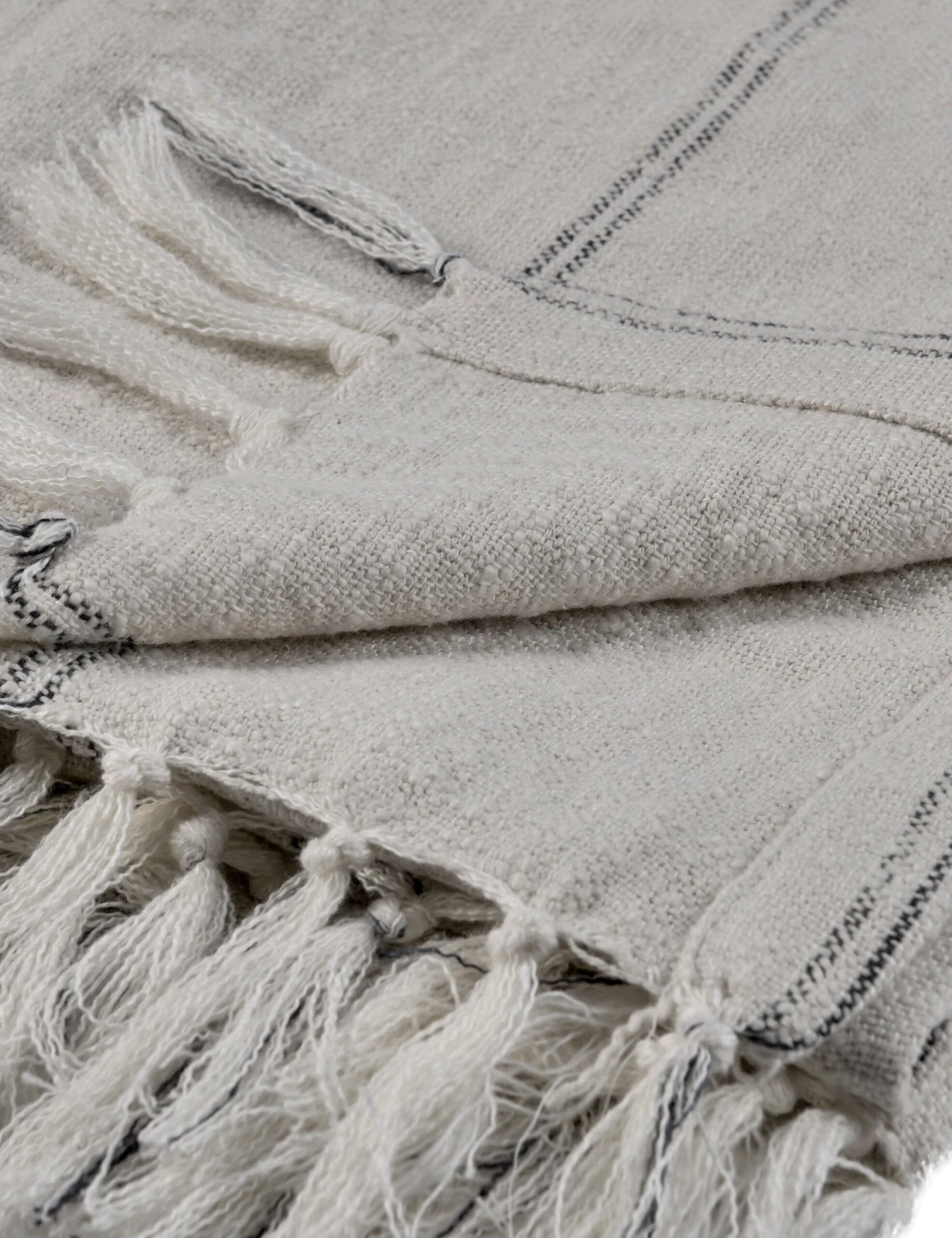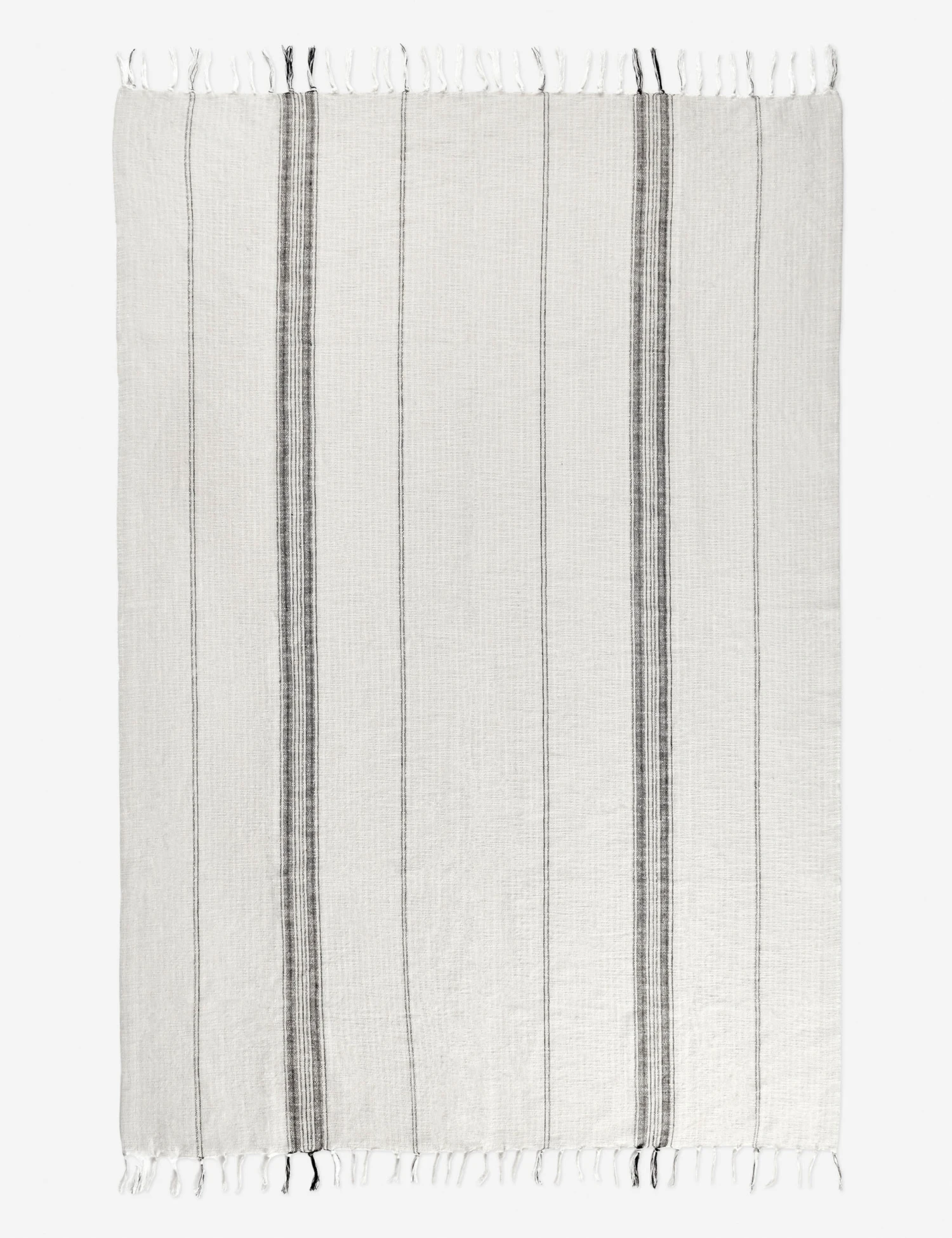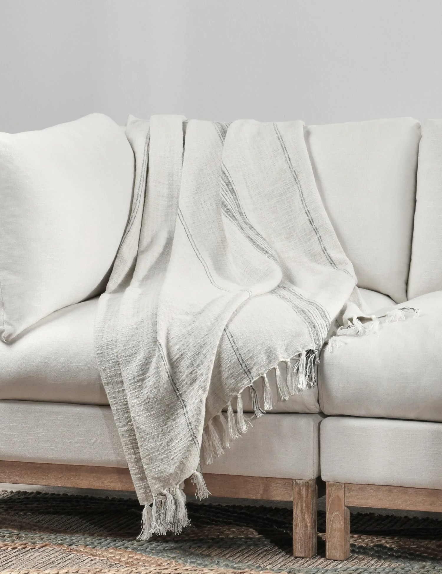A slim stripe design brings simple, tailored elegance to this throw blanket. A charming accent for your sofa or armchair, it offers a cozy, warm look that creates an inviting ambiance, even in a refined living space. Fringe trim adds a perfect touch of whimsy and tactile appeal.