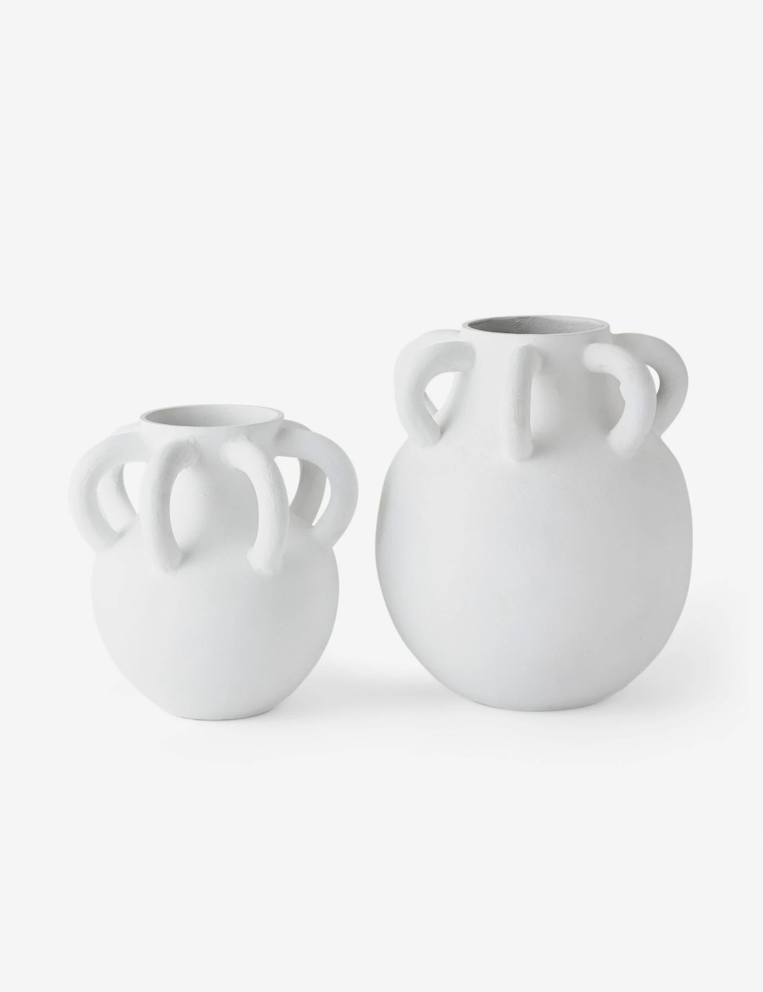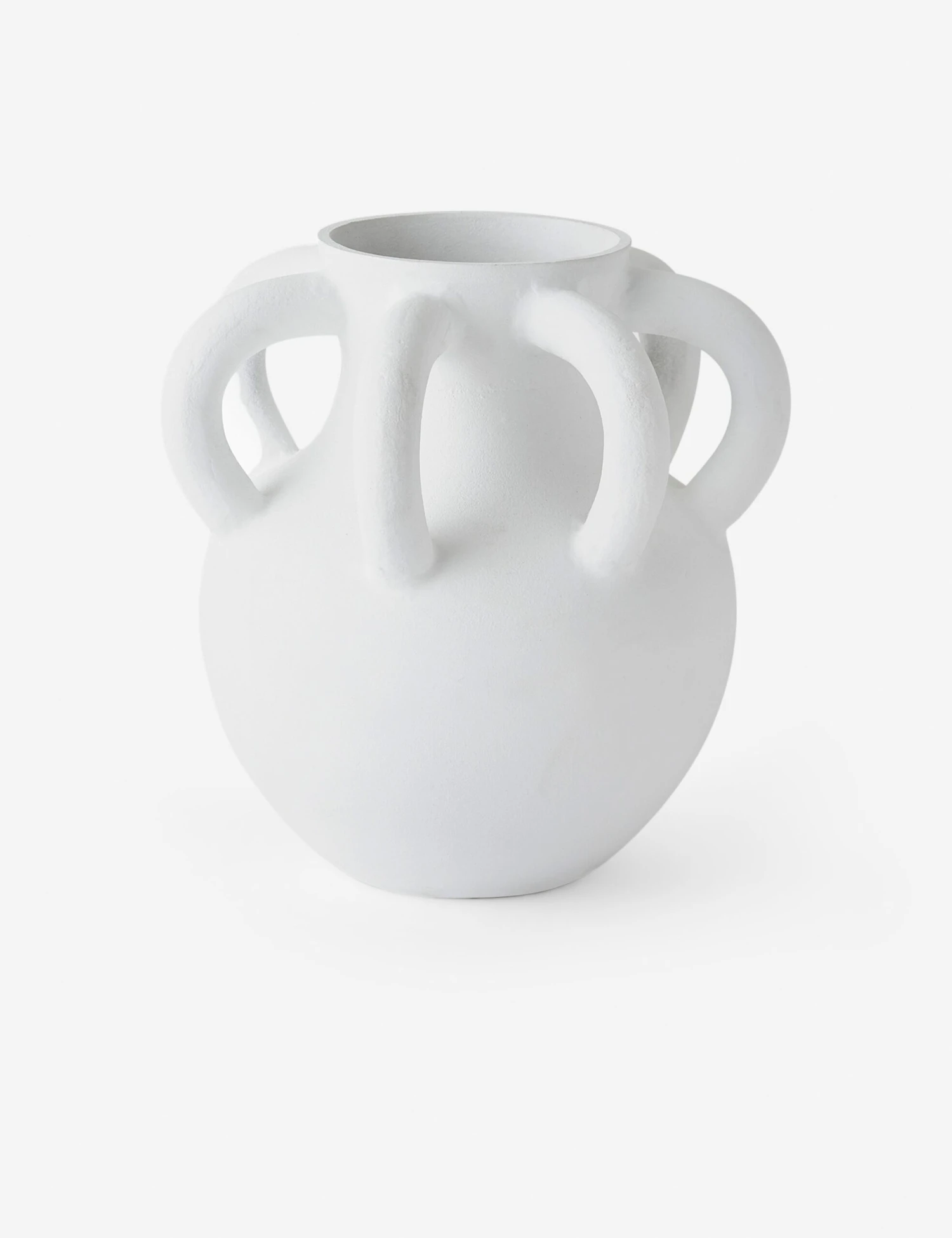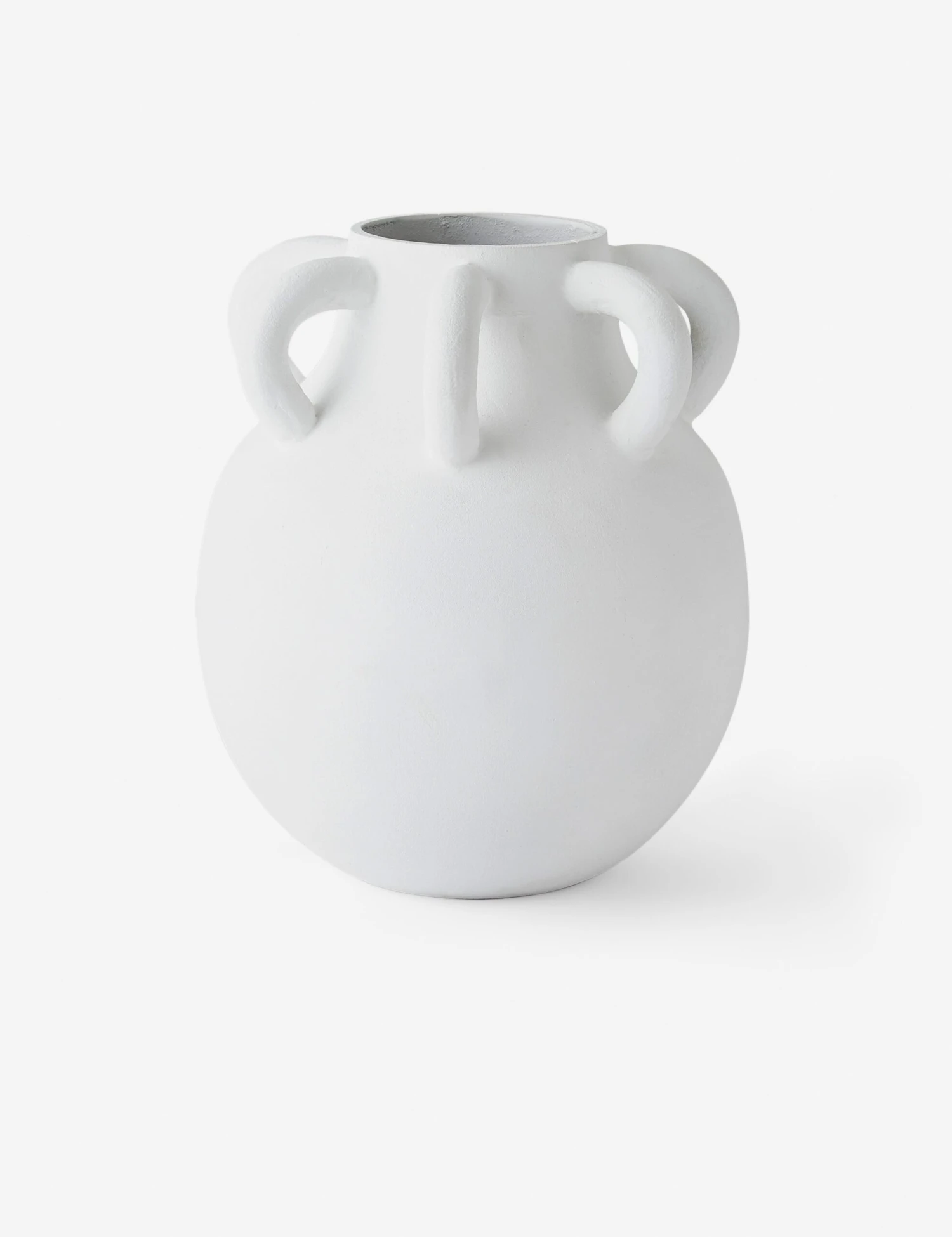 Bring a simple touch of elegance to your curation with the Amphora vase. Its classic silhouette features decorative handles that bring an artful edge to the design. The rounded lines and soft hue combine for understated impact in any setting.