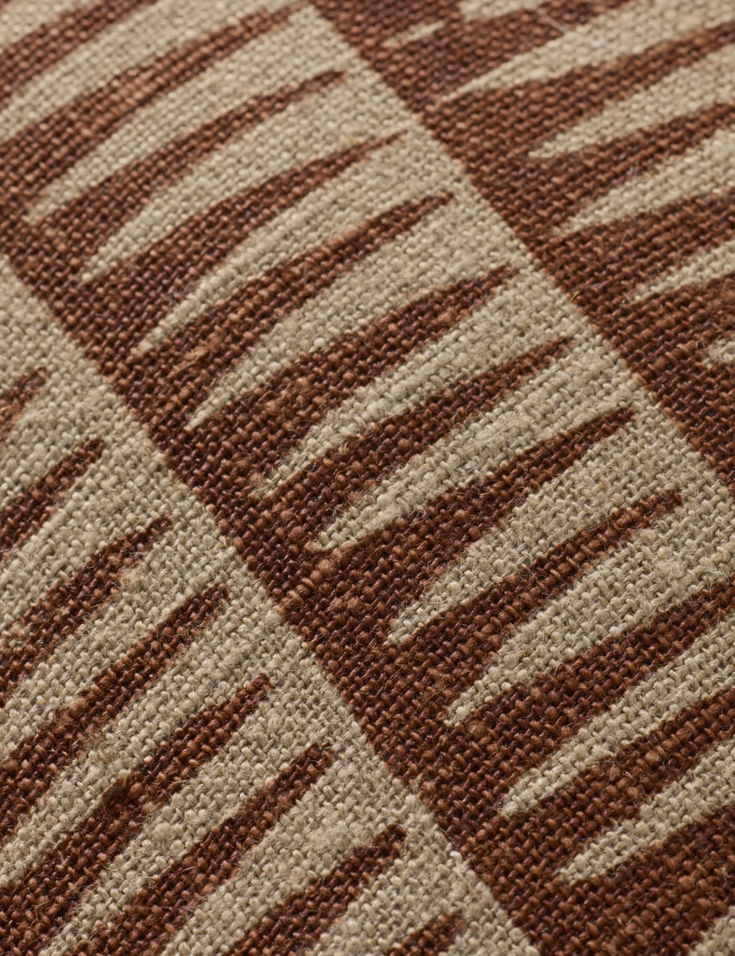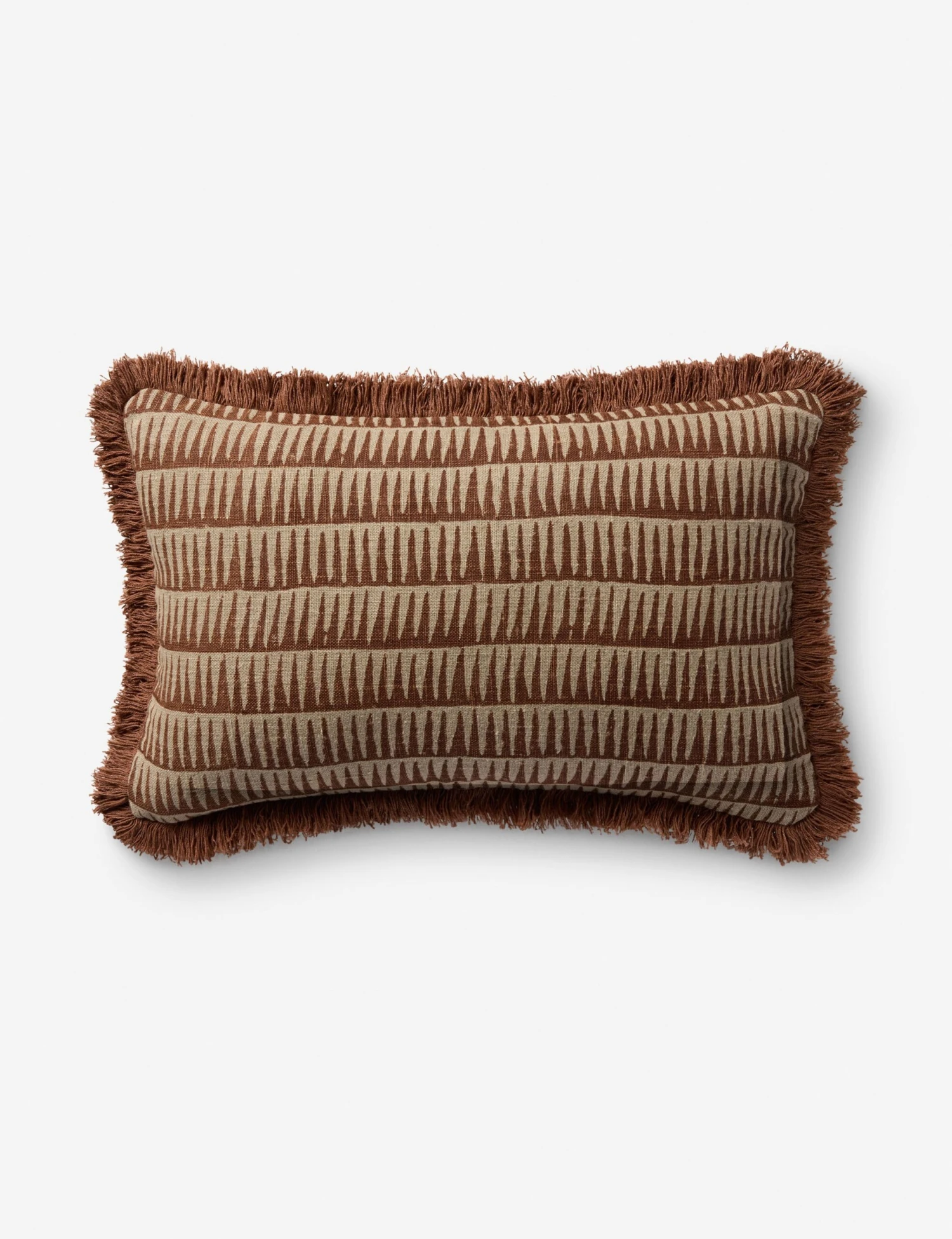A geometric motif brings chic elegance to this linen accent pillow. The design is finished with a thick fringe, offering a rich layer for organic or deco-inspired looks. Style this pillow solo or mix with solids to ground a relaxed arrangement.