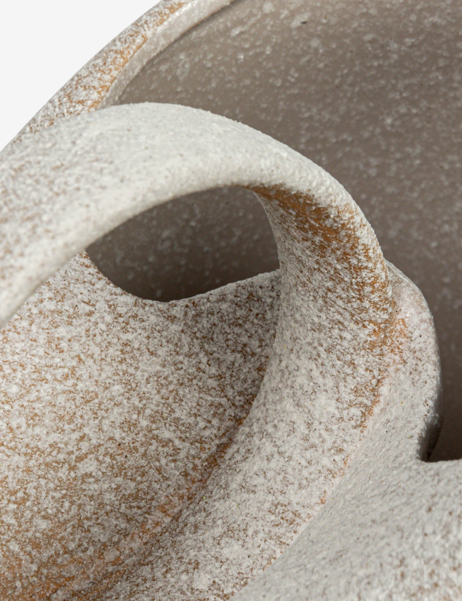 A sand-like finish brings a coastal charm to this modern stoneware pitcher. Its sleek silhouette is enhanced by a large looping handle and a reactive white glaze for a rich textural character.