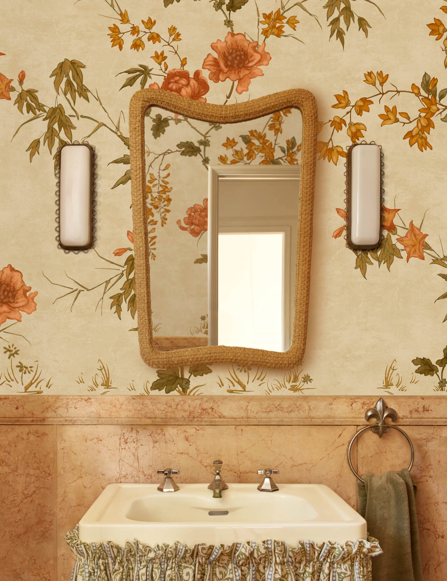 Natural texture with a modern edge—our Anora mirror brings chic texture to your palette. Its woven frame cuts a stylish silhouette with a tapered frame, curved at top and bottom. Add this wall mirror to any space for a bright new depth.
