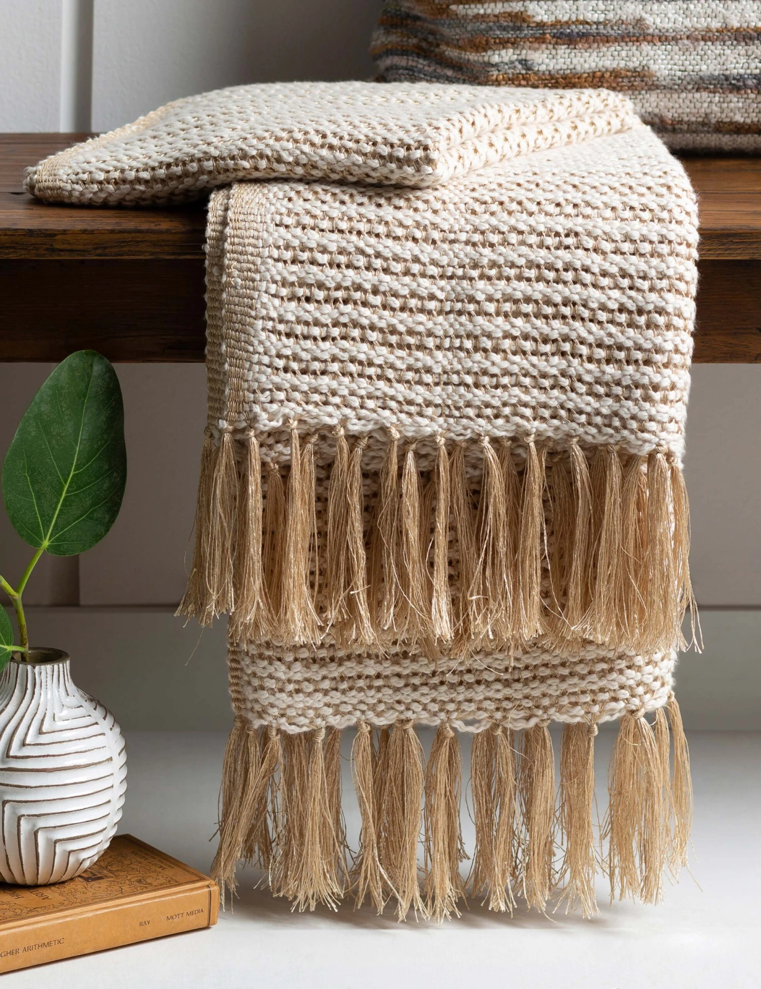 The Arana throw brings a grounding warmth to any space. With its intricate weave, tassel fringe, and neutral tones, you can layer this piece into almost any curation for a timeless touch of texture.