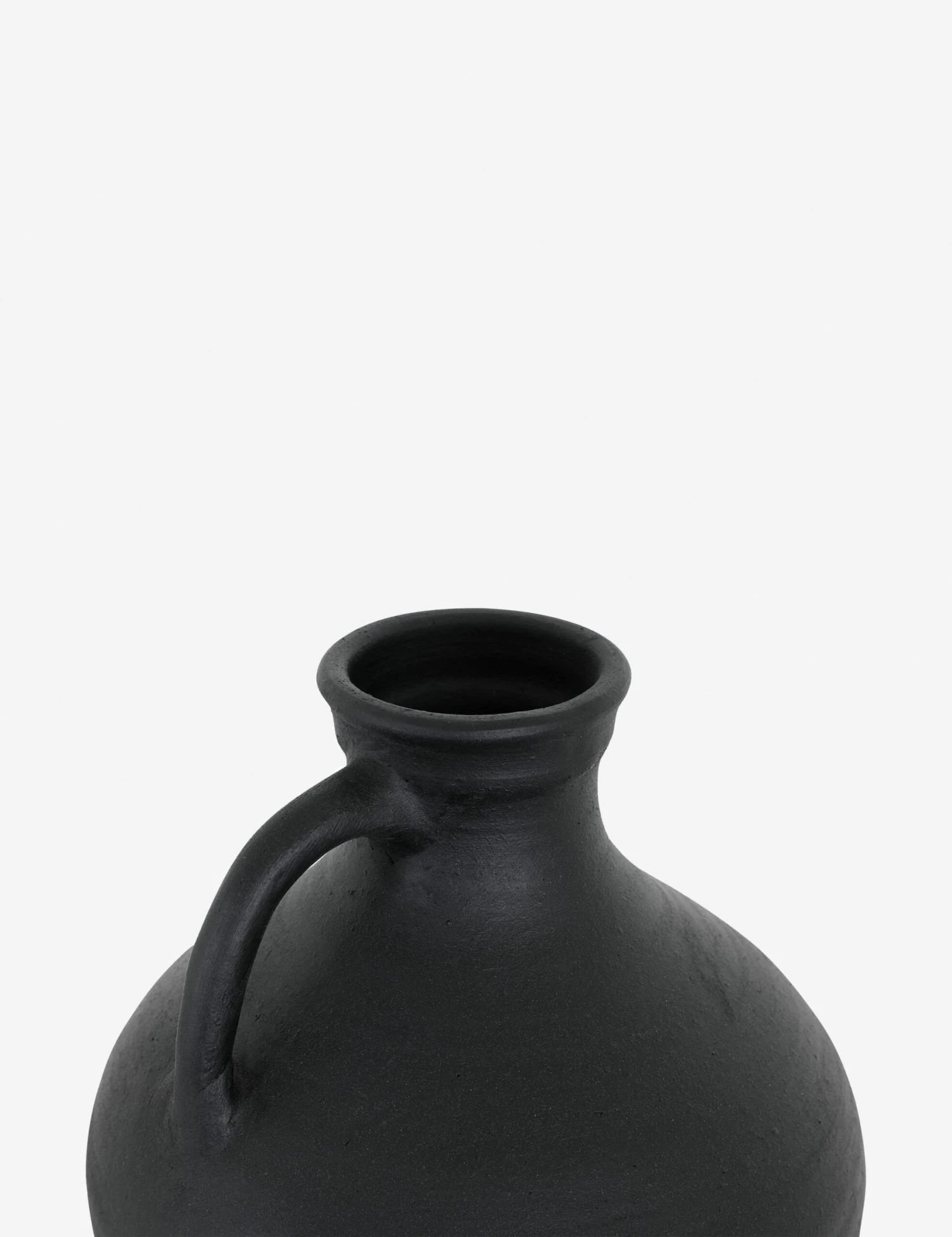 With Greco-Roman styling and a striking black finish, this terracotta vase brings a timeless touch to modern design. Each piece is hand-thrown using traditional techniques, offering an artisan detail for your home.