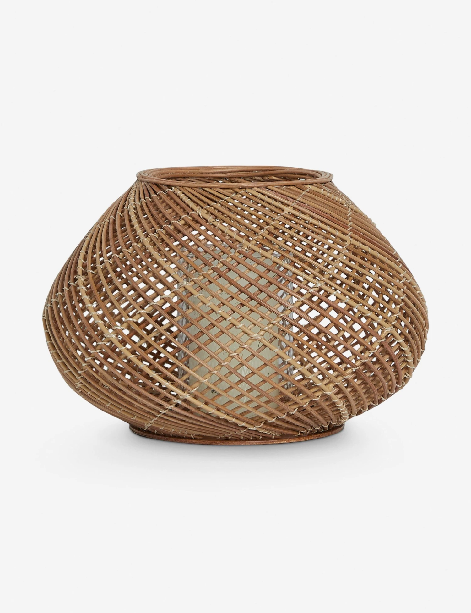 From the first warm evenings in spring to crisp fall nights, this modern lantern candleholder brings welcoming warmth to your deck or patio. A chic patio companion, its natural finish and open weave allow light to filter through, creating the perfect ambiance for outdoor hangs.