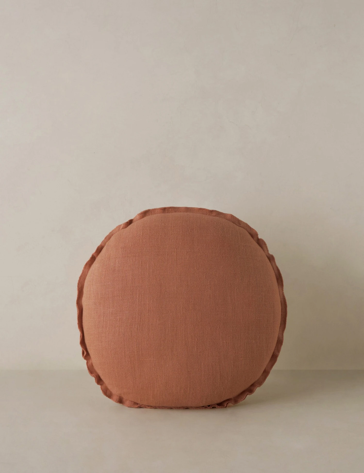 Adding throw pillows to a space instantly makes it feel cozier and more welcoming. Take an effortless approach with this round linen pillow, woven from superior-quality long fiber flax for natural texture. With its stitch detail and flange trim, this decorative pillow is an easy-to-style pop of color for any room.