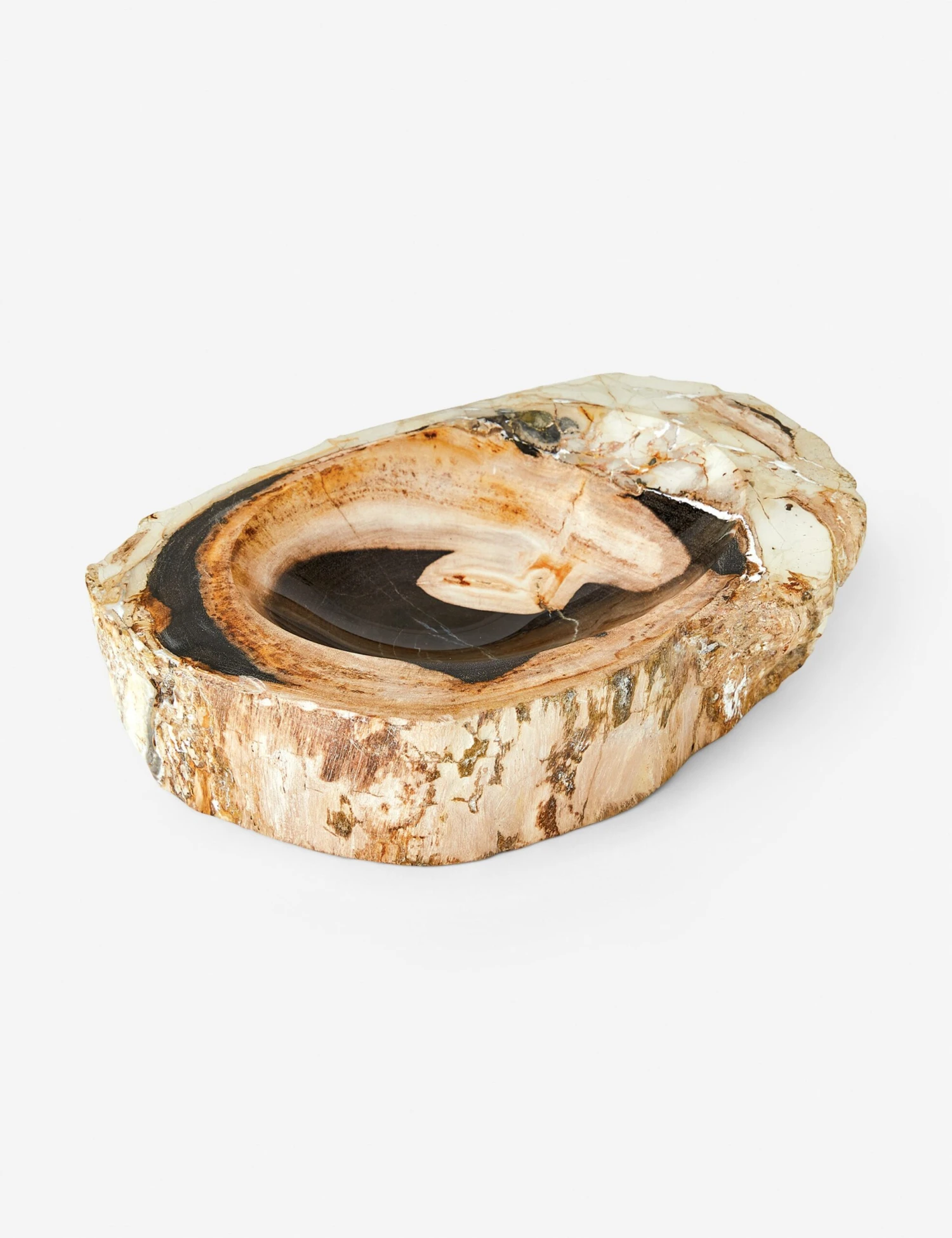 The Arriaga bowl offers a functional touch with statement appeal. Petrified wood layers a dramatic natural texture into any curation, and this handcrafted piece is the perfect way to bring the look home. The material is made from minerals forming around fallen wood, making each bowl a truly unique piece of art.