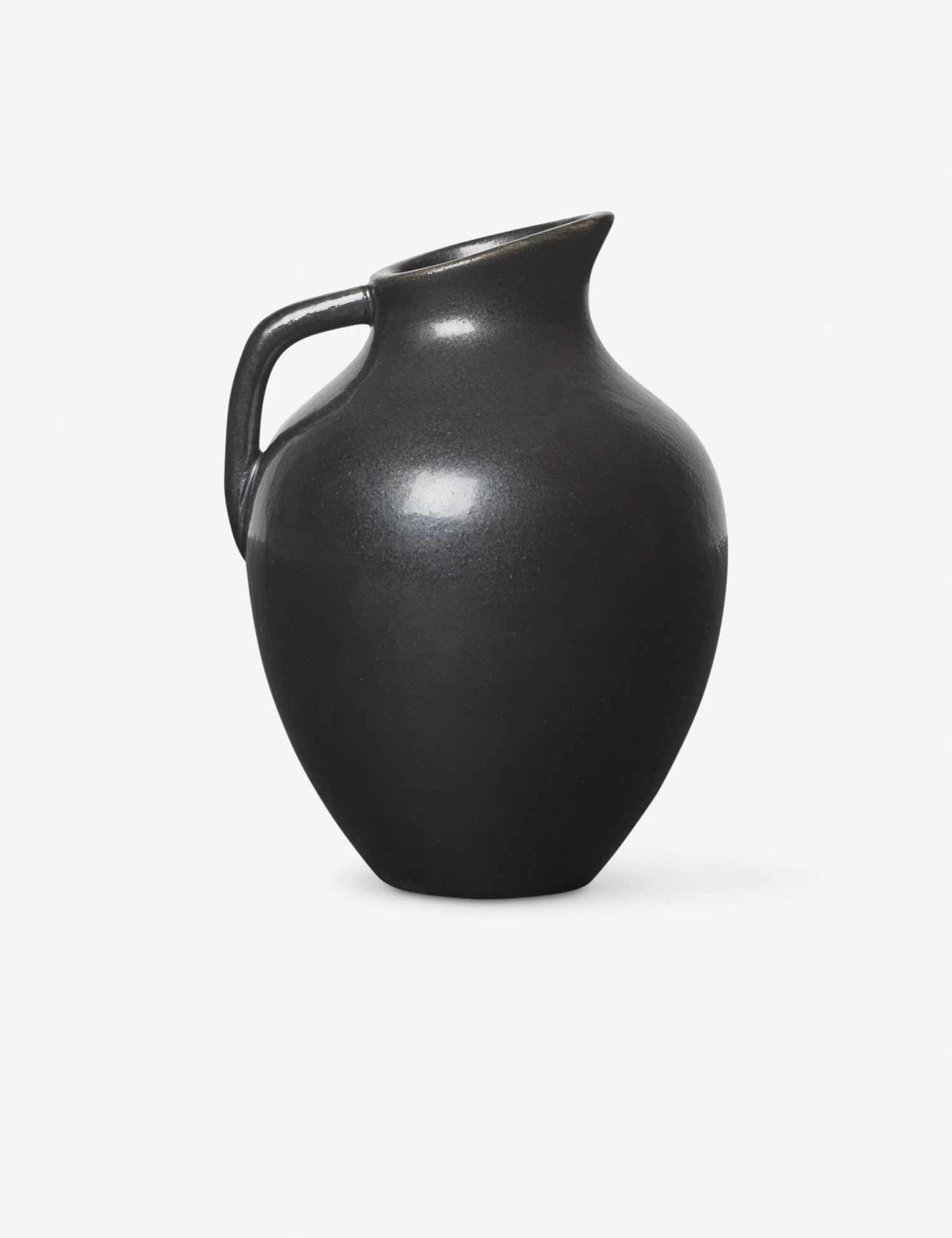 Ary brings the look of ancient Greek pottery to a tabletop accent that fits in the palm of your hand. This miniature vase features a classic jug silhouette in a dark charcoal finish. Style this piece with a single stem for a pop of color, or group it with other small objects for a charming vignette.