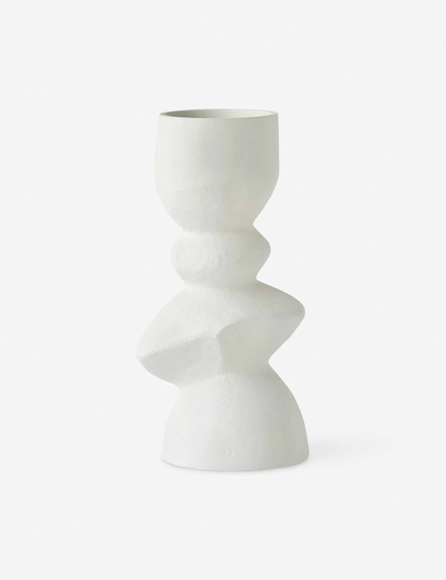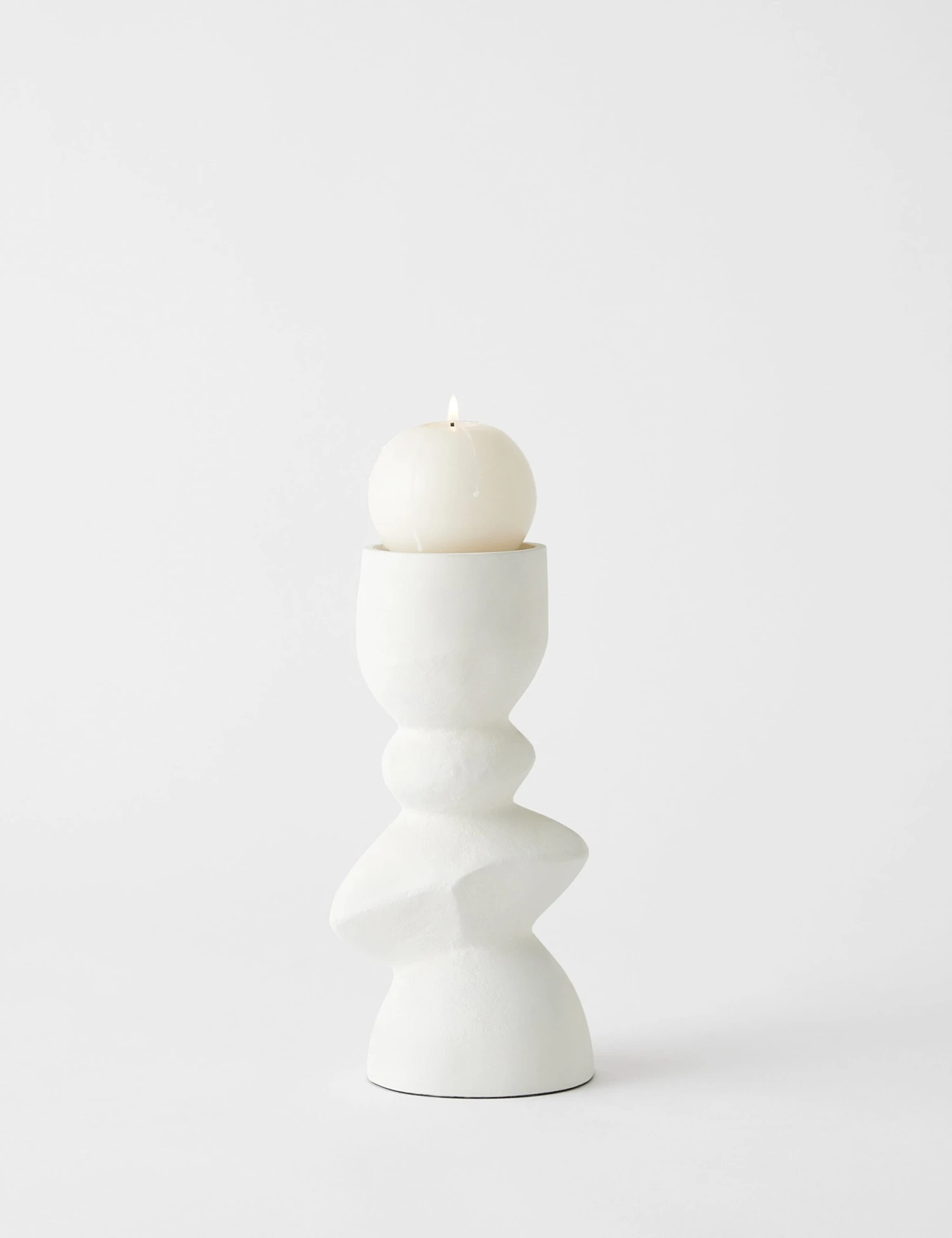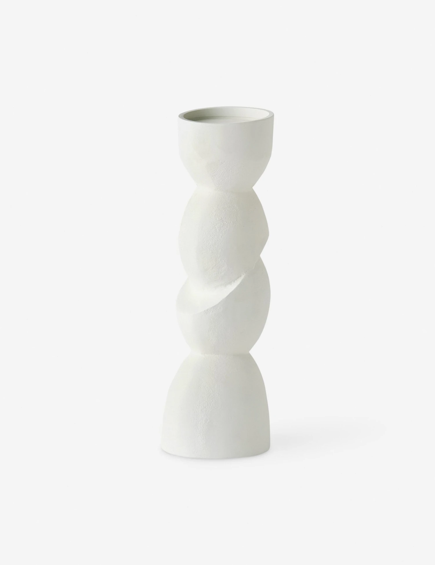 These hand-cast aluminum candle holders feature playful, organic curves finished in matte white for soft impact. Group them together to layer dimension and movement on your table or mantel.