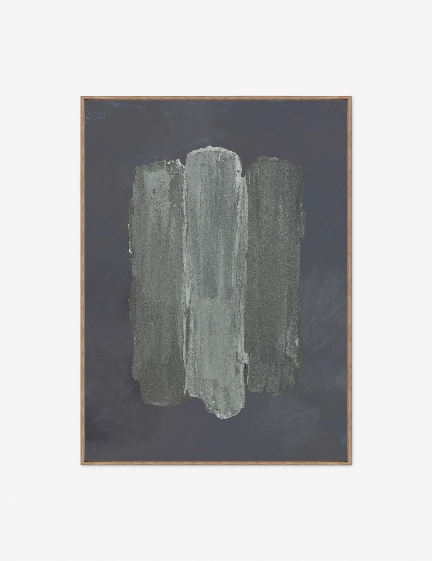 A trio of gray swaths sits on a deep blue field in this abstract wall art painting. The Blue Like You series offers a study in color, bringing depth and drama to modern wall decor—perfect for a home office or lounge.