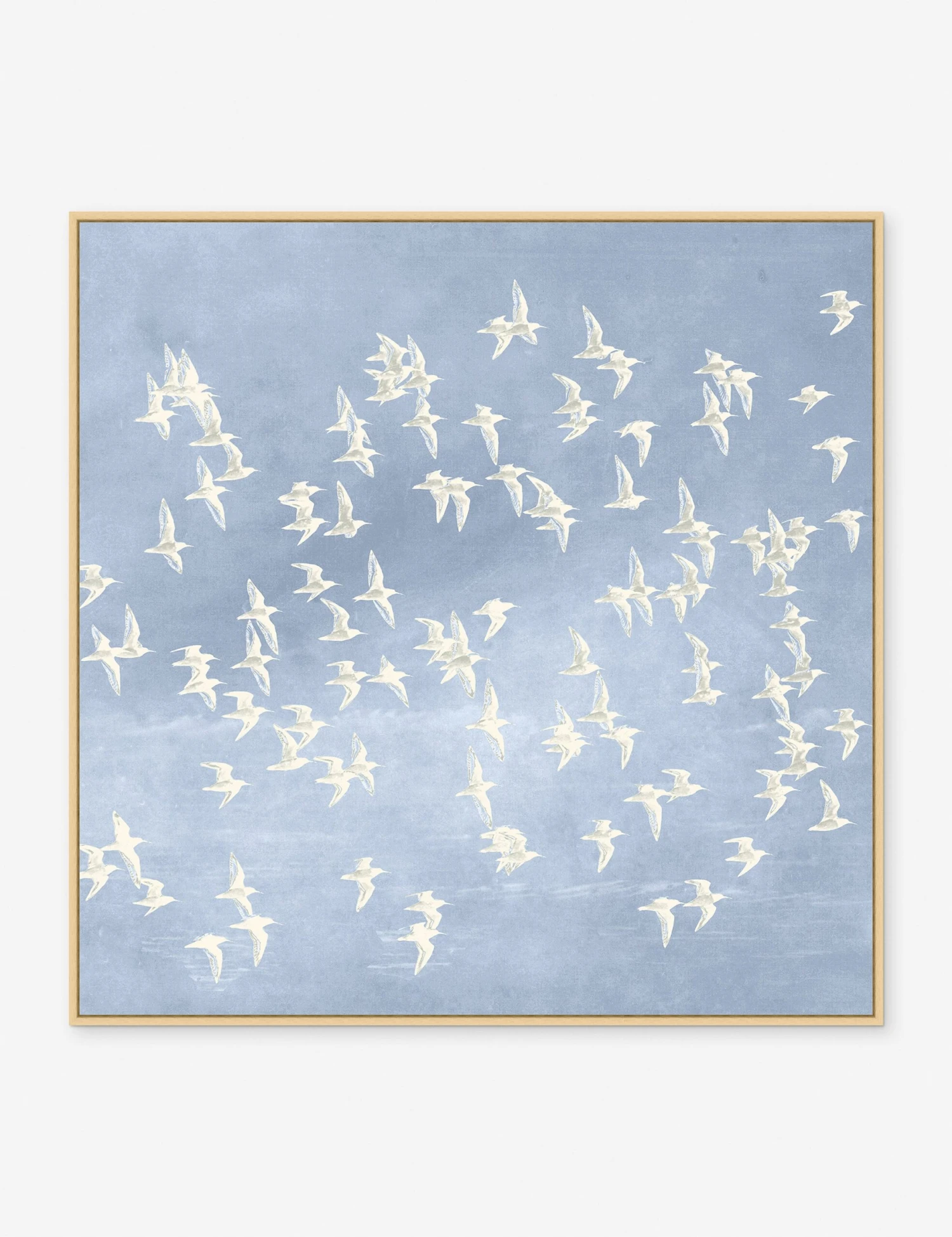 Bring a serene moment to your wall decor with this stunning gallery-quality print. The scene shows a flight of white birds across a soft blue sky. We love this piece’s subtle impact and quiet depth for a refined wall art curation.