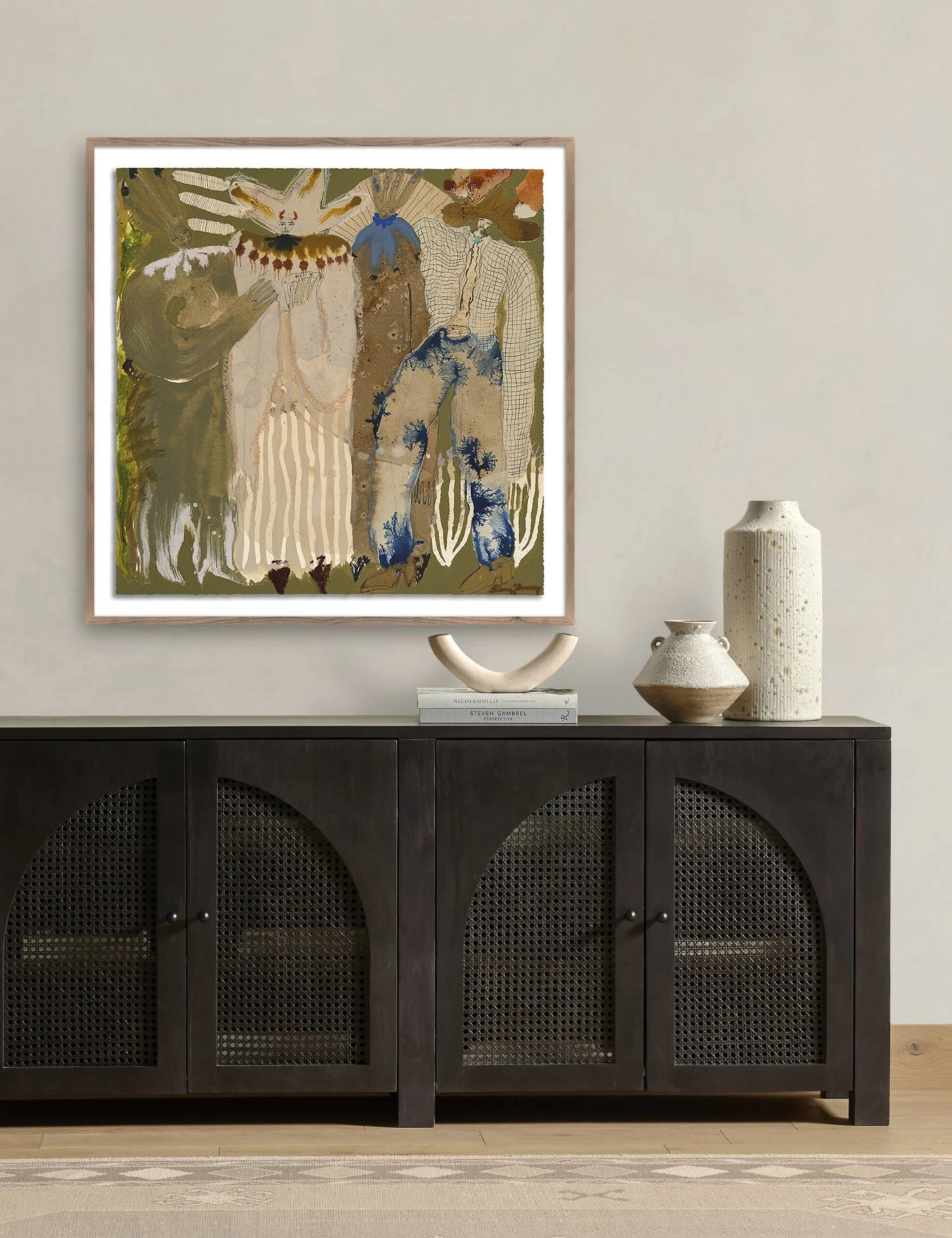 Caroline Pinney’s artwork has a vibrant style that captures subjects with lyricism and movement. We love the use of color in this piece with its muted earth tones punctuated by bolder hues—perfect for imbuing your wall decor with character and sophistication.