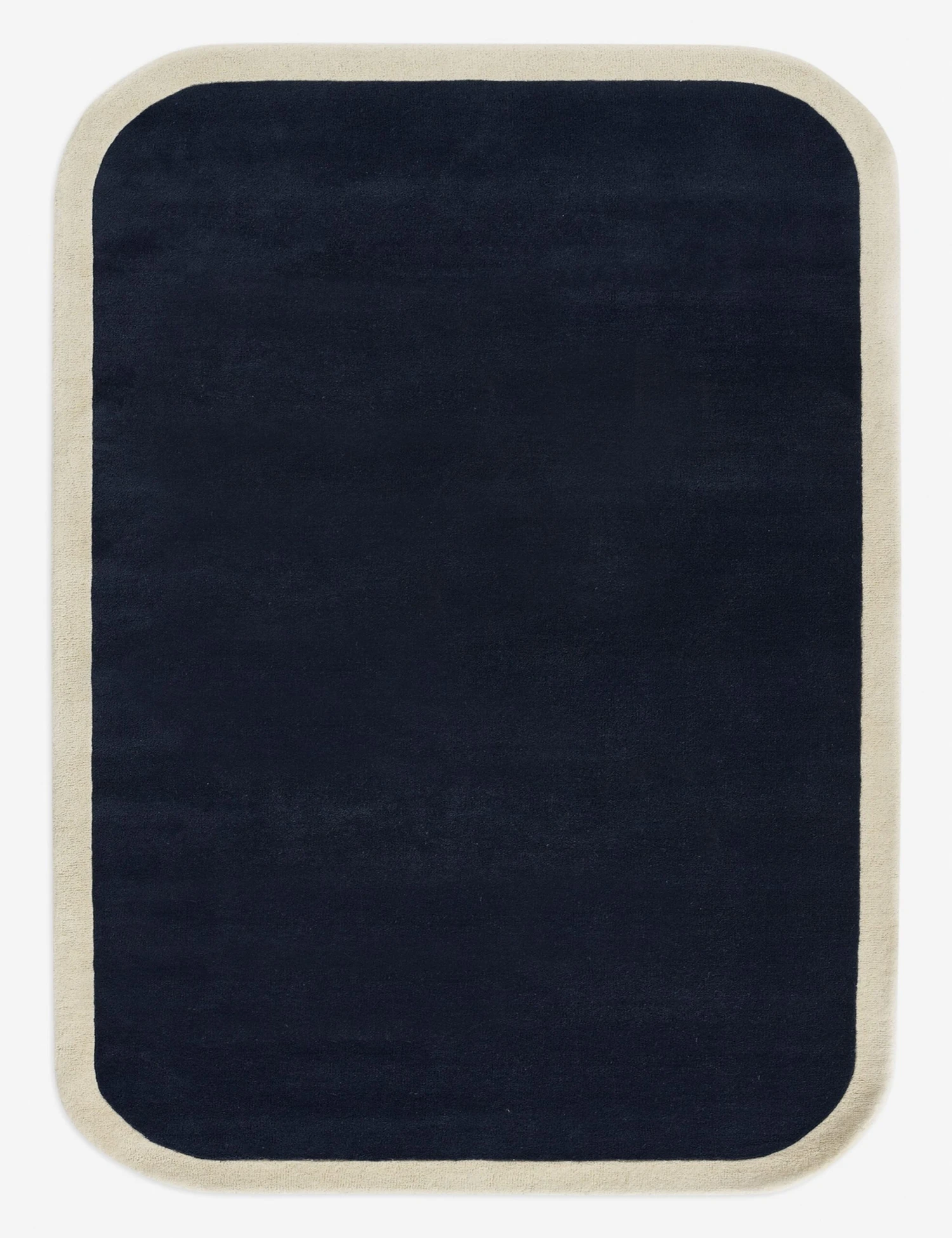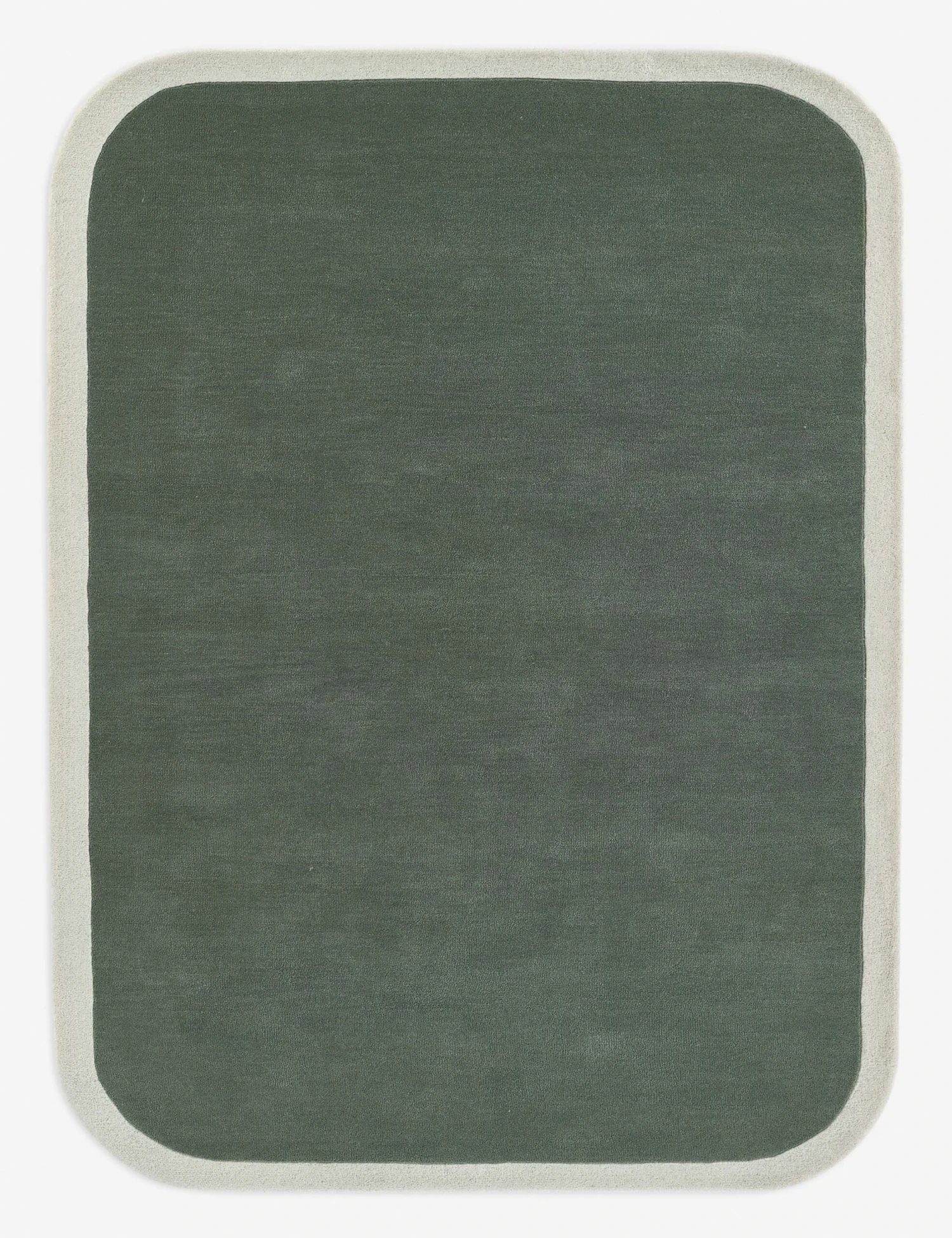 The Boswell rug offers soft impact in the room. Its solid design is set off by a high-contrast border and rounded corners for an understated yet bold foundation. This hand-tufted rug features a thick wool pile for a plush, natural texture underfoot.