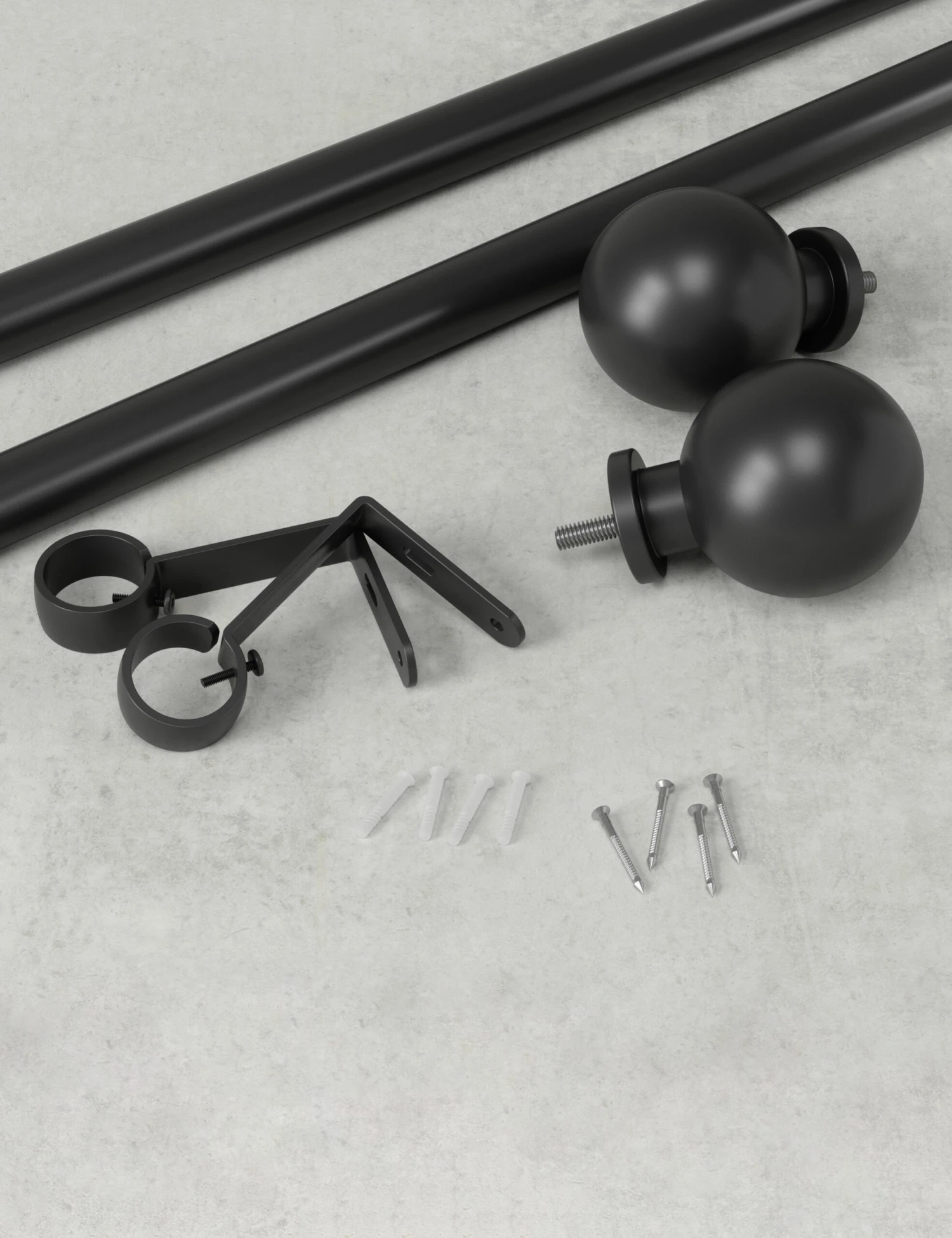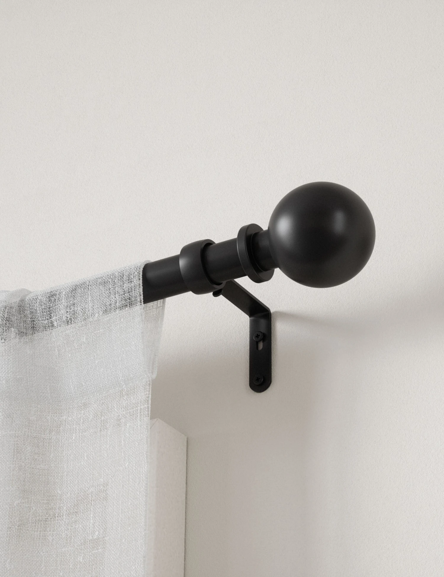 Looking to add some polish to a window treatment? This steel curtain rod features a simple matte black finish with ball-shaped finials for an elegant touch that suits traditional and modern aesthetics with ease. The adjustable design comes with everything needed for installation.