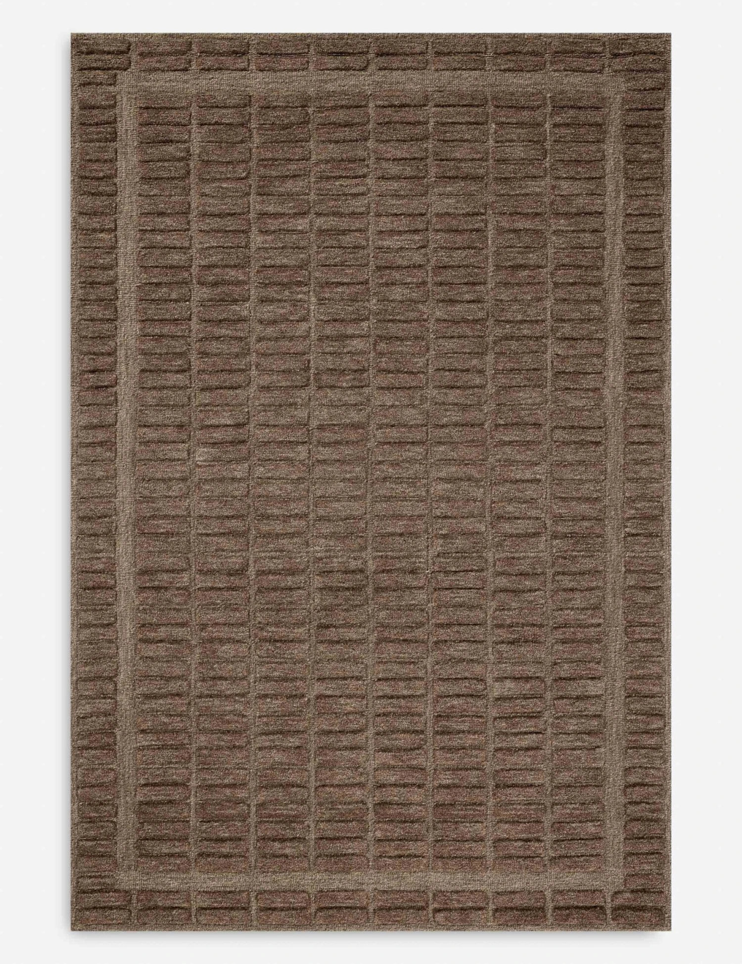 Soft texture meets fresh appeal in this signature rug collaboration from Chris Loves Julia and Loloi. This hand-tufted rug offers a tactile foundation with a tough woolen tread and subtle pattern underfoot. A tight, rectangular grid with a low border brings a grounding symmetry to the earthy hue of this design.