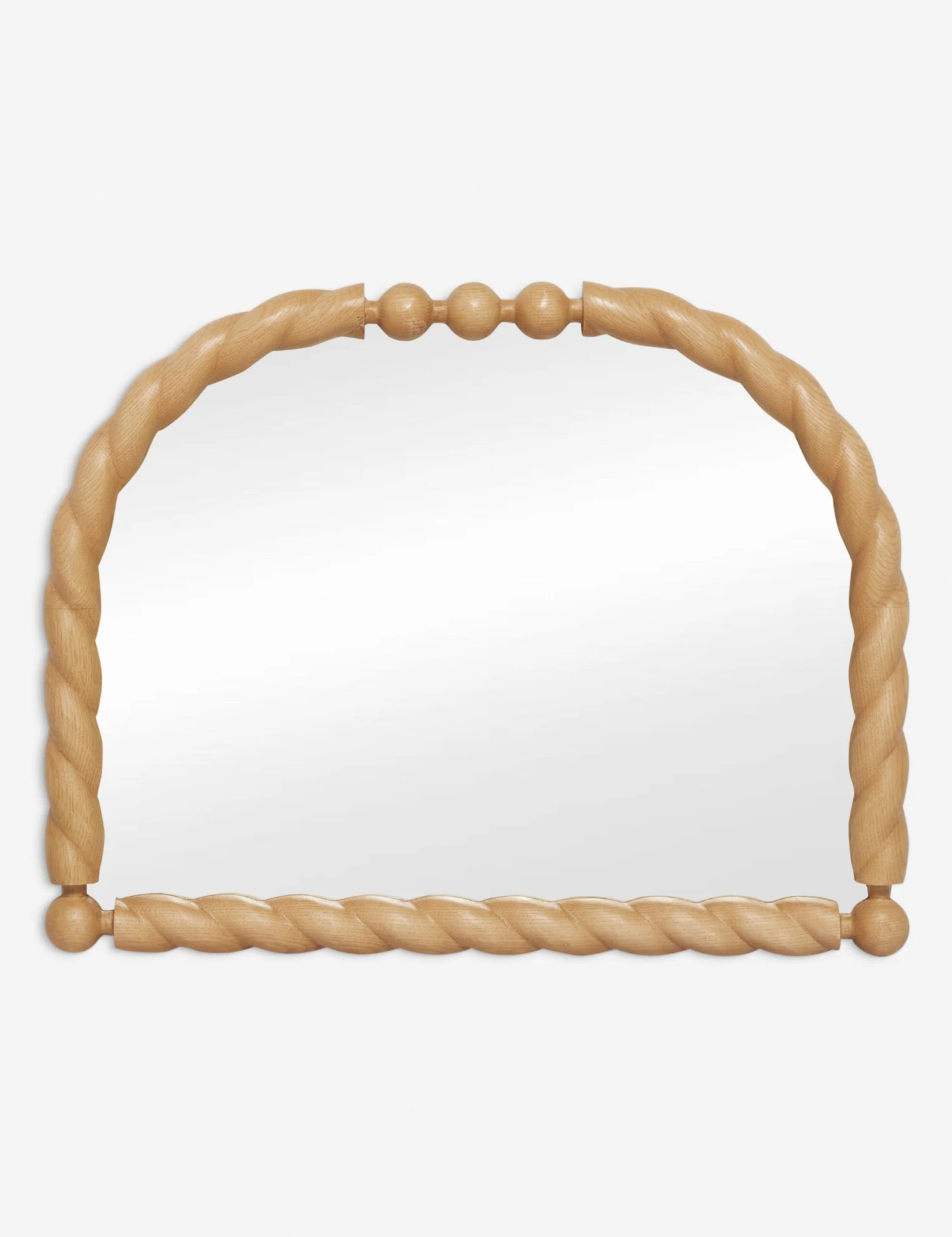 In this stylish mirror, light oak provides natural grain texture with a twist. The braided wood frame is decorated with ball finals, bringing a chic look and feel to your mantel, dresser, or console table. This mantel mirror is from our exclusive Sarah Sherman Samuel collaboration and features all the trademarks of her warm, edited style.