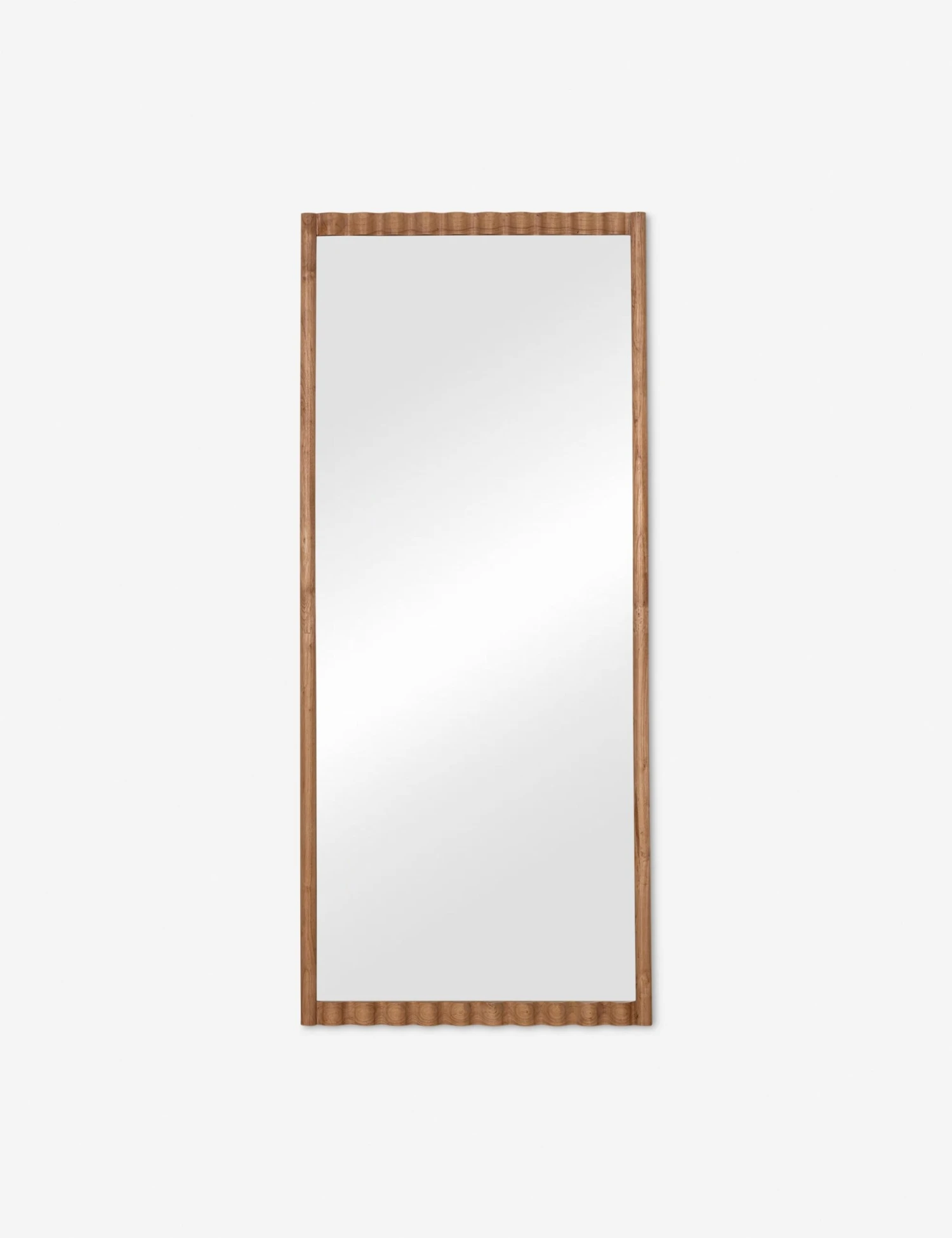 Rippled lines and natural wood grain give the Brannic mirror its refined edge. With a floor-length silhouette and warm, organic finish, this leaning mirror lends a bright presence to the room, a minimalist statement with lasting impact.