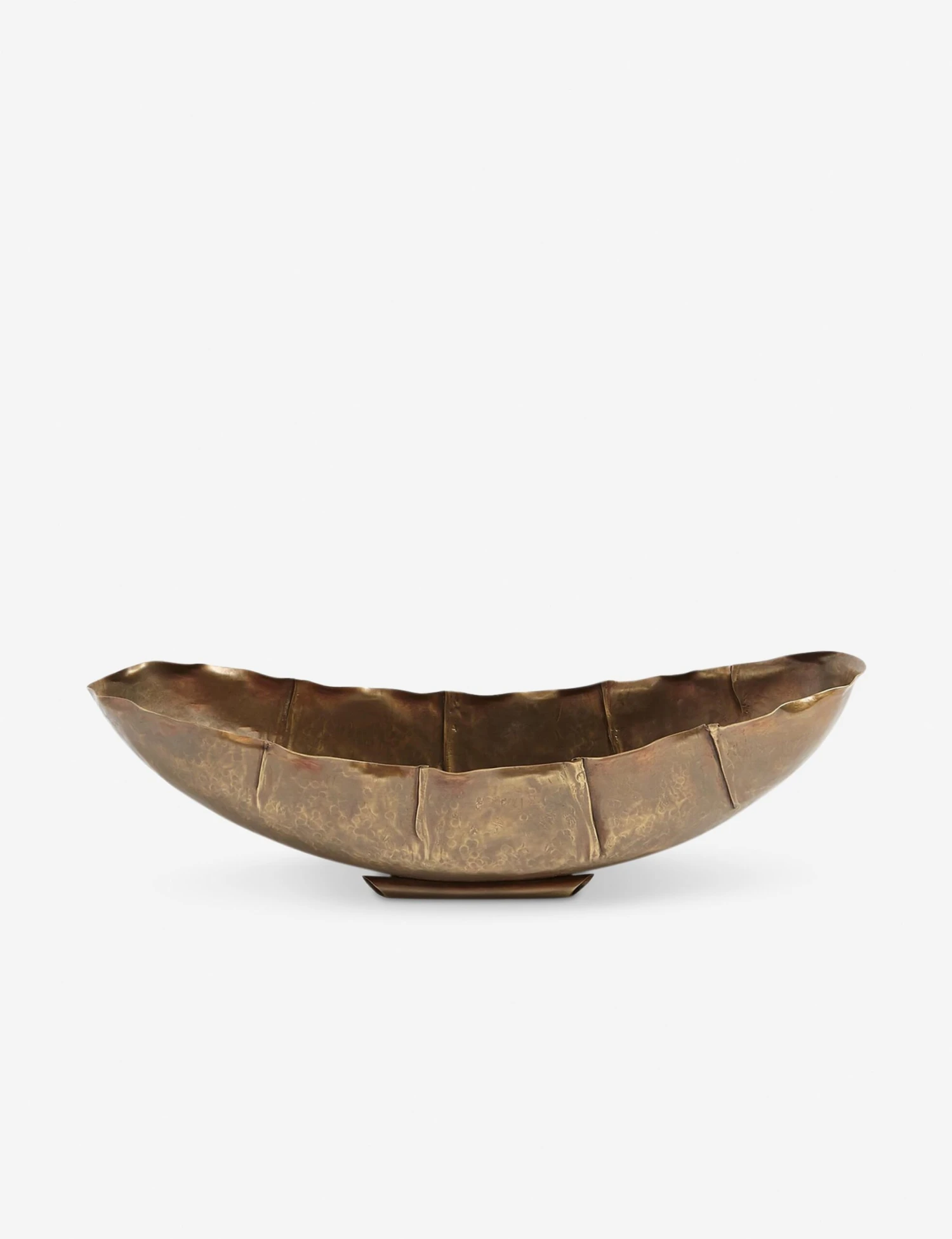 With its organic shape and warm brass tone, this bowl is a striking centerpiece for any table. Fill it with seasonal accents or style it empty to showcase the beautiful patina.