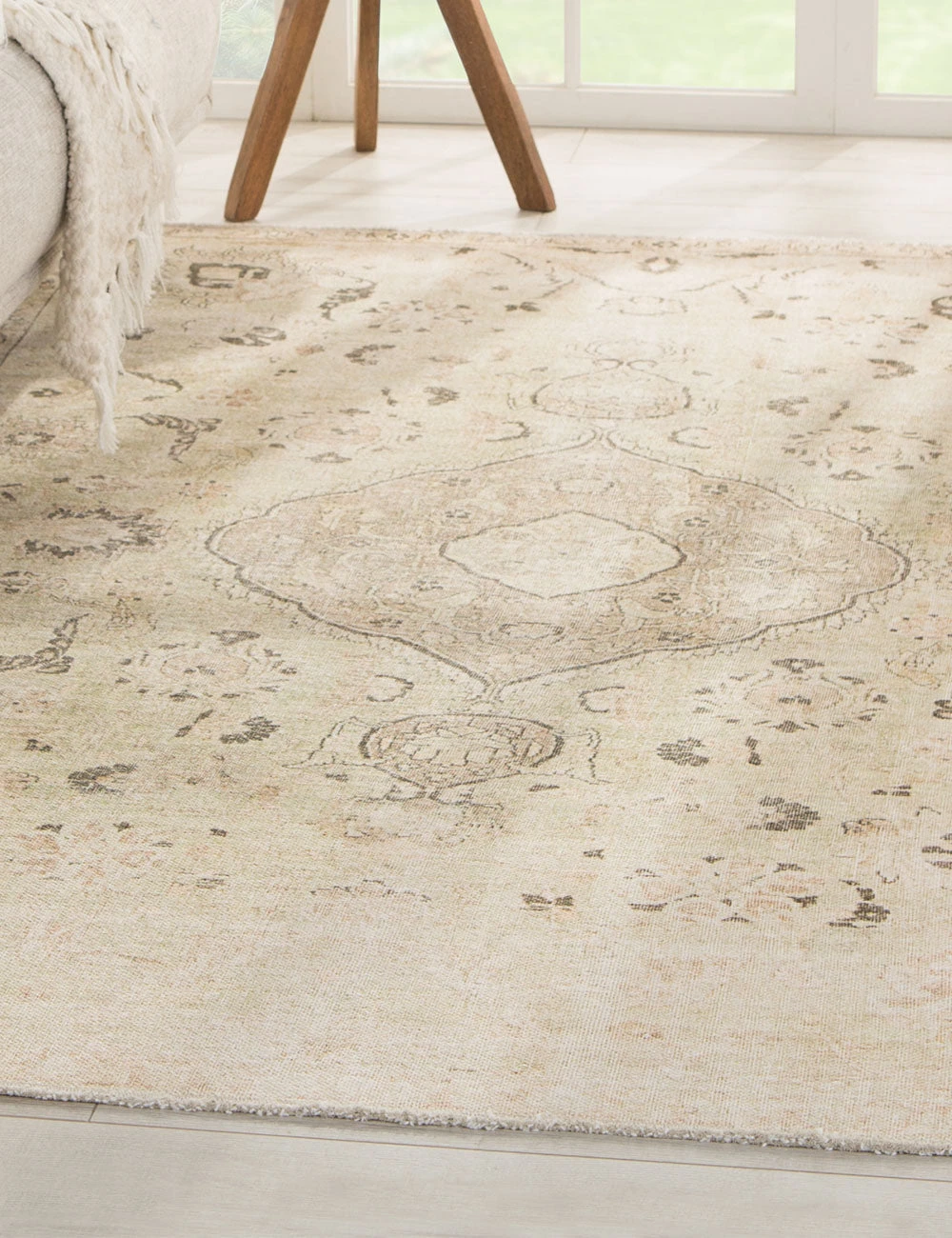 An ornate medallion pattern and distressed effect give this area rug a vintage, far-flung feel. Its desert neutral tones make it easier to style throughout your home. The rug’s modern construction is made for easy-care appeal in high-traffic areas and everyday spaces.