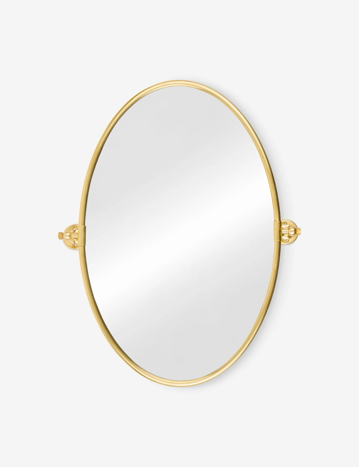 The Caferro mirror pairs a timeless look with industrial detailing in a clean, modern design. An oval metal frame softens the silhouette, while sleek bracket mounts offer a refined touch. Style this decorative mirror in a hallway, bathroom, or bedroom to brighten the space with a polished finish.