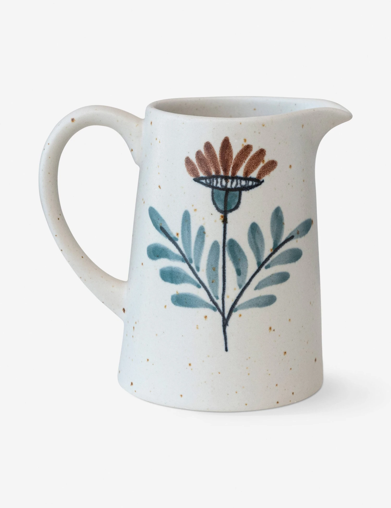A simple floral design adds vintage appeal to this hand-painted stoneware pitcher. The perfect centerpiece for an inviting breakfast nook or sideboard, it cuts a timeless profile decorated with blue and brown flowers on a speckled background, adding texture and color to your decor.