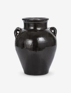 A nod to classic pottery, this decorative vase imbues organic warmth with its espresso finish and timeless silhouette. Graceful curves and petite handles add visual dimension, perfect for a rustic but refined living space. Each piece has a unique, distressed finish, which may vary from brown to black and appear matte or glossy.