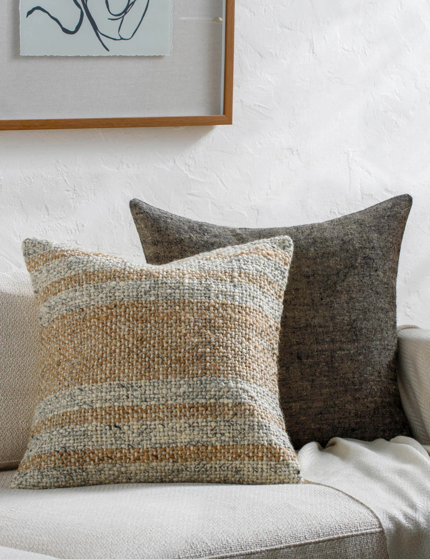 Add a warm woolen touch to your edit with the Cantillo throw pillow. Its striped design brings a chic look to the earthy tones, fashioning an accent pillow that can ground even the most modern spaces with timeless appeal.