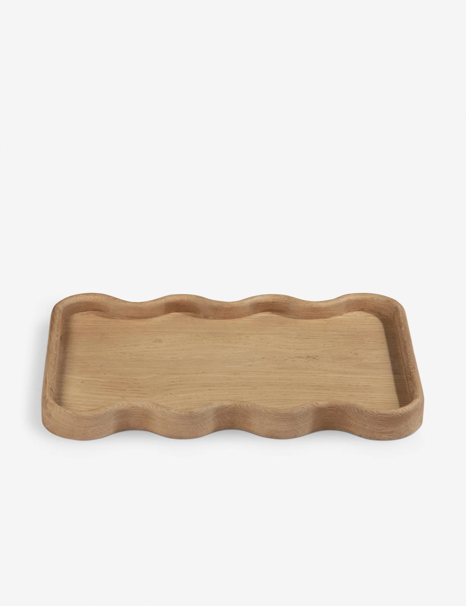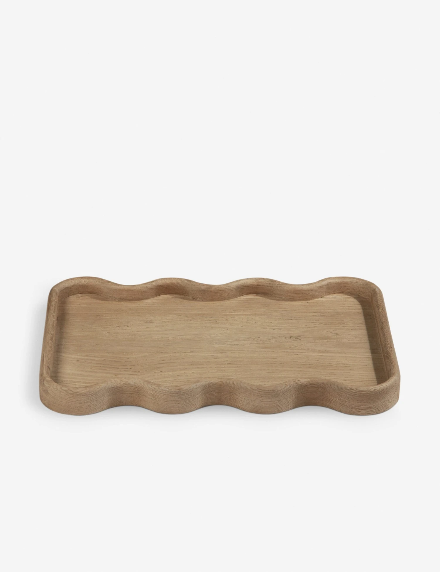 Add an artful touch to any tabletop with the Cario tray. The wavy shape and rounded edges bring a sculptural quality to the solid oak, styling a chic and versatile accent for everything from corralling accessories to staging a modern vignette.