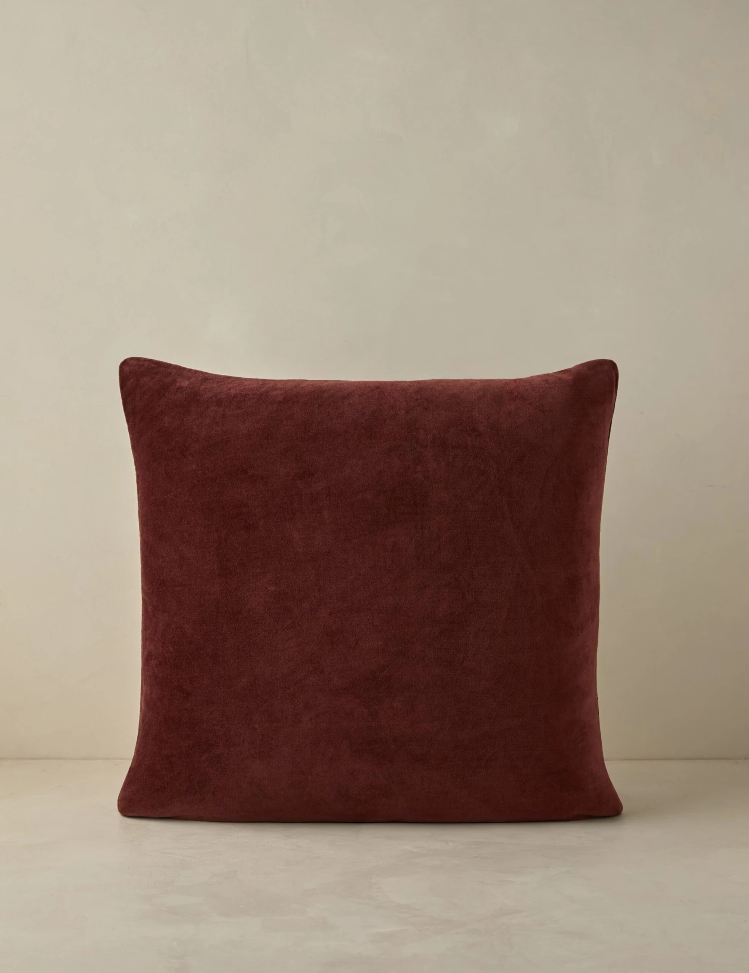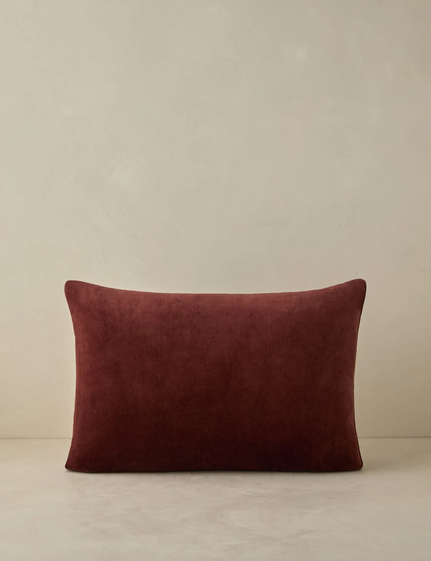 A velvet throw pillow is the ultimate touch of luxury. Carmine features a dark floral print against rich red velvet—the perfect accent pillow to add depth to your curation.