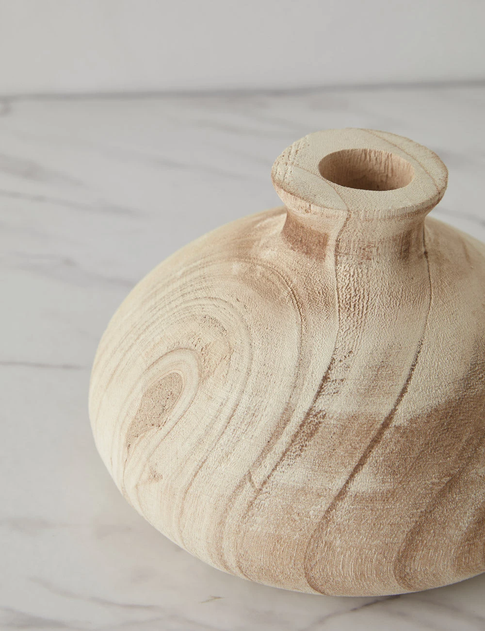 Add fresh texture to your decor with this unique wood vase. A minimal finish puts the beautiful paulownia grain on full display, offering a natural complement to dried stem botanicals and floral displays in organic-inspired spaces.