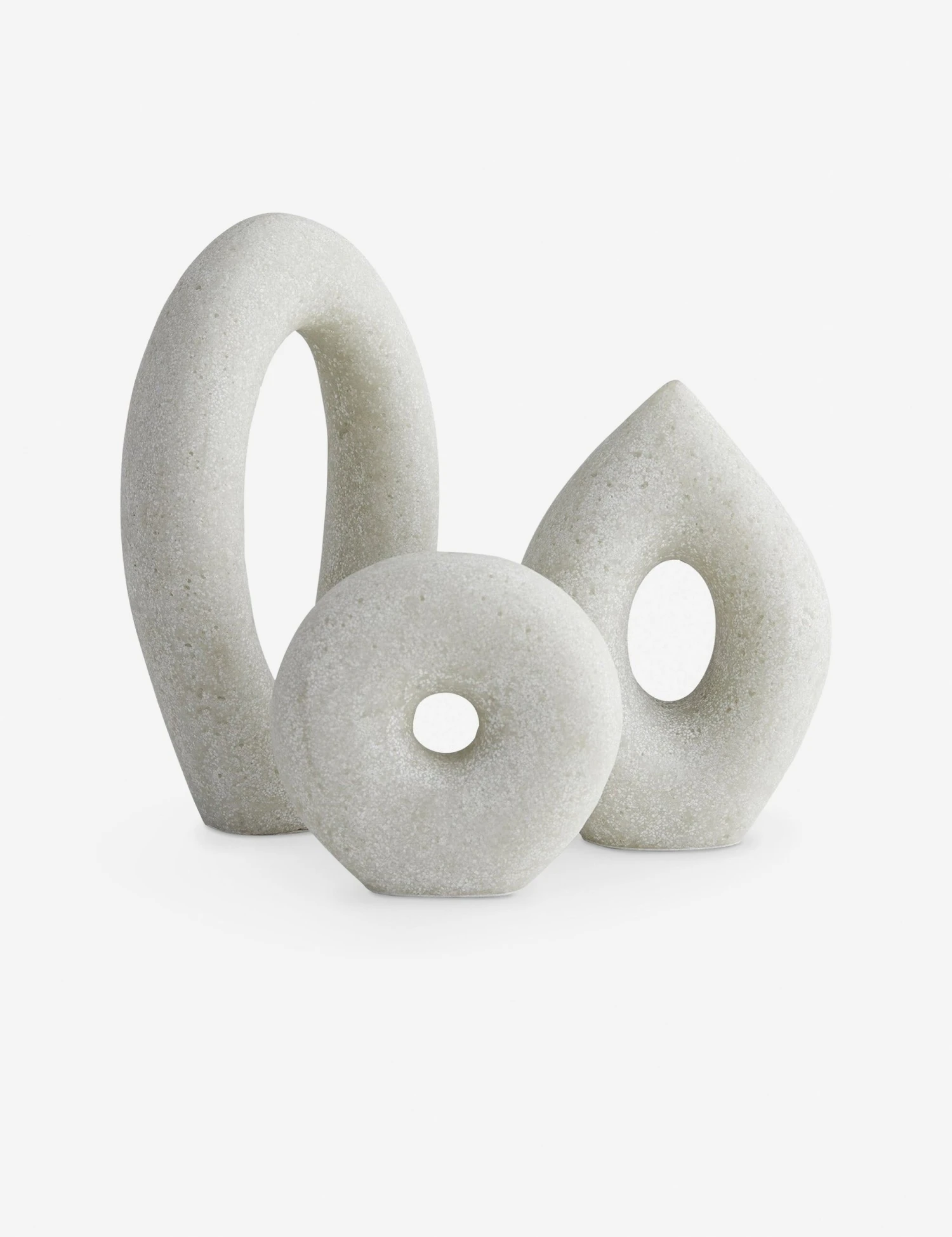 Featuring a stone-like texture, this set of sculptures recalls mid-century style with a modern play on negative space. Whether you style them together or mixed in with other pieces, they add visual interest to your home.