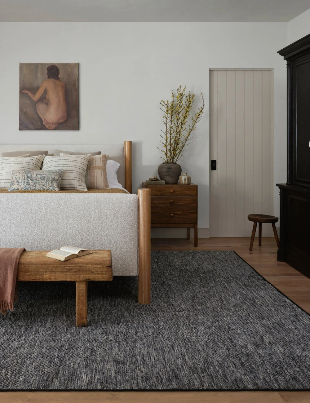The Collins rug features a hand-knotted design with an artful blend of techniques creating a textural feature underfoot. We love the vibrant yet understated pattern of this floor rug’s unique weave paired with the versatile appeal of the deep tone for a cooly collected space.