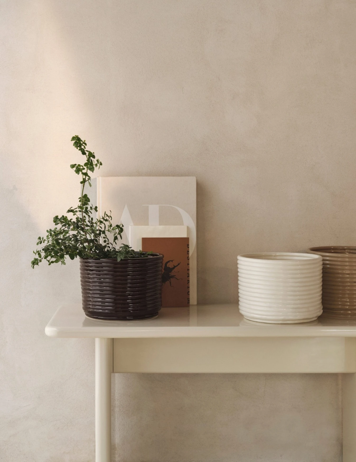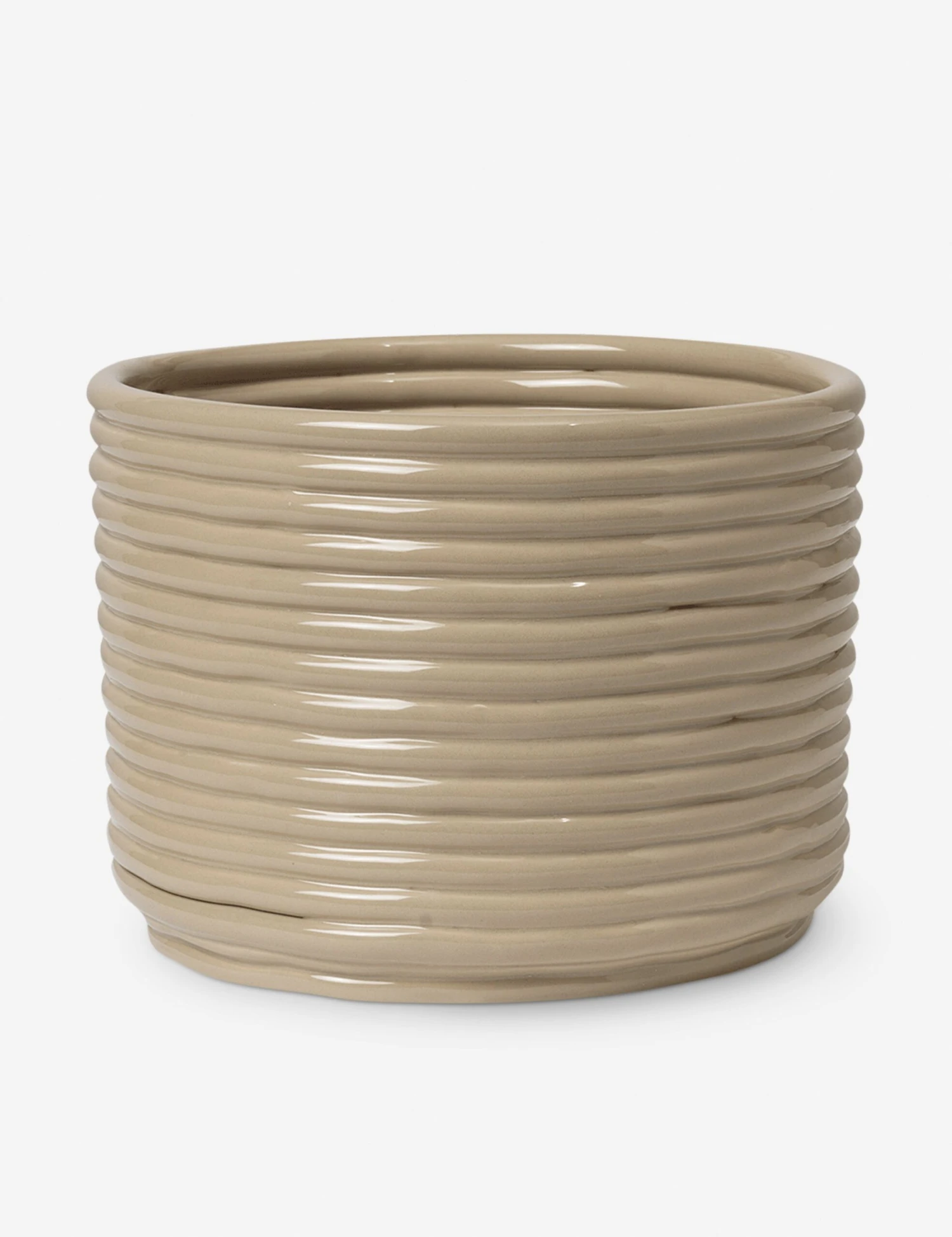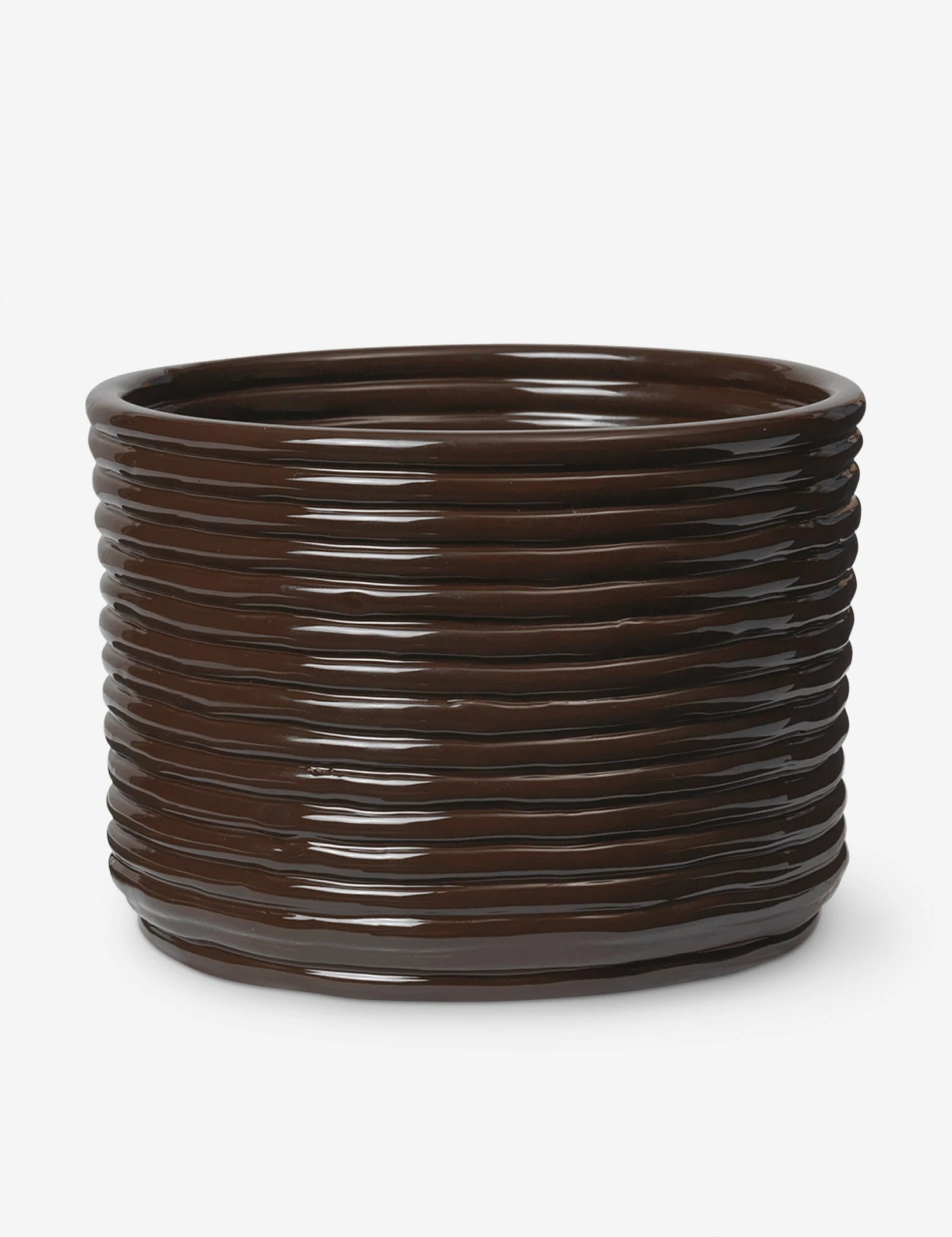 This ceramic planter pot features a coiled design and glossy finish, bringing a clean, sculptural finish to your greenery. Style it with a leafy plant or sculptural succulent to add a fresh touch to any shelf, tabletop, or windowsill.