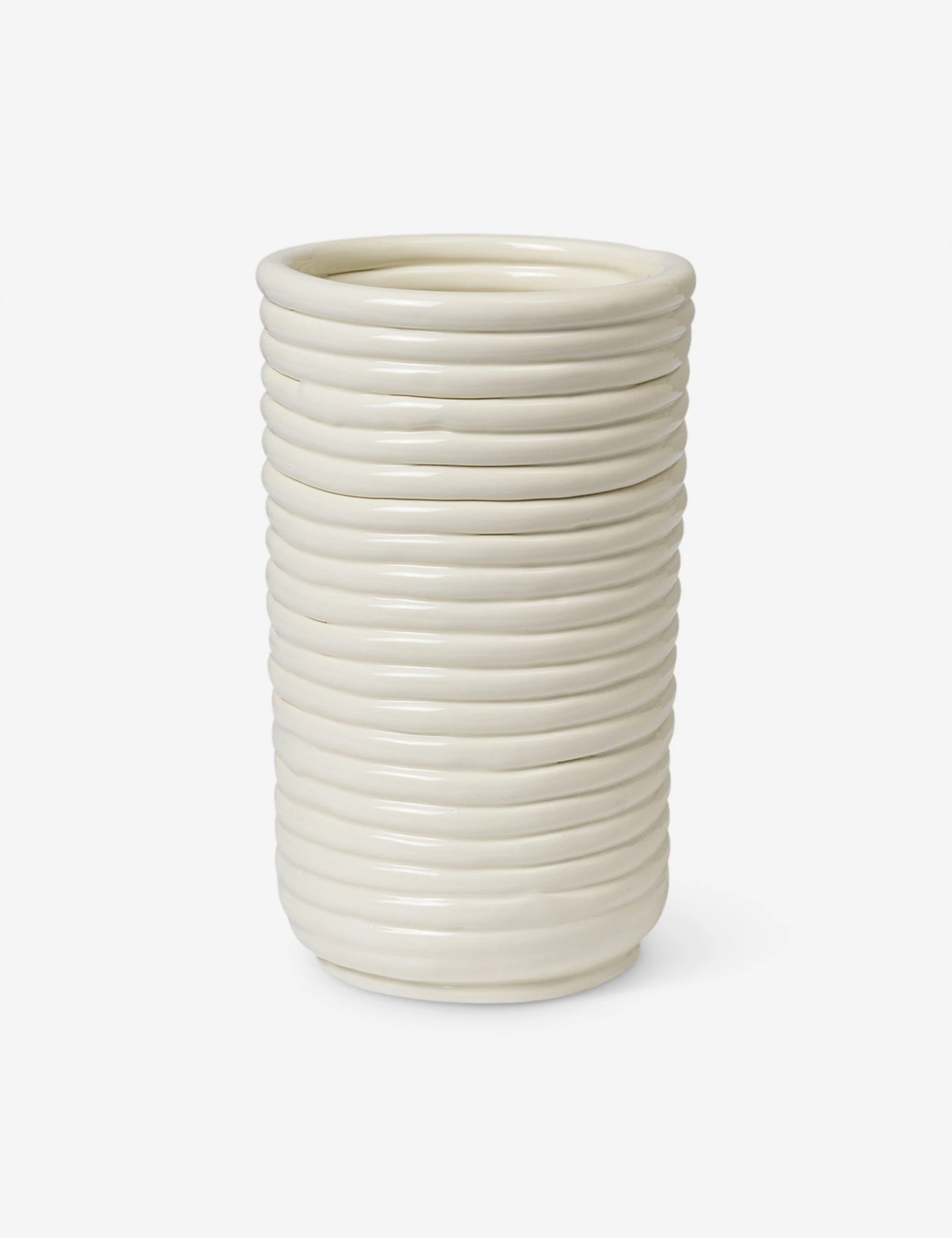 This ceramic vase features a coiled design and glossy finish, bringing a clean, sculptural look to your floral arrangements. Style it with fresh stems or dried botanicals to add a natural touch to any shelf, tabletop, or windowsill.