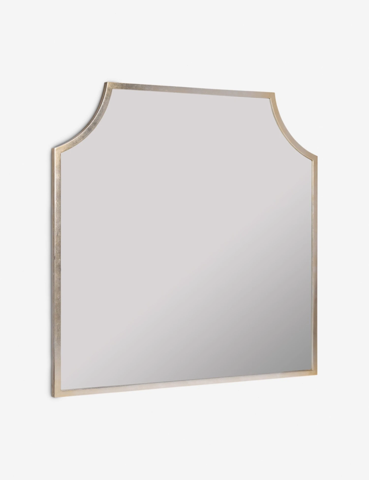 A sleek metal frame with scalloped corners brings a stylish edge to this versatile wall mirror. Whether adding a charm to a transitional lounge or fashioning fresh appeal in a traditional bedroom design, this decorative mirror is set for effortless elegance.