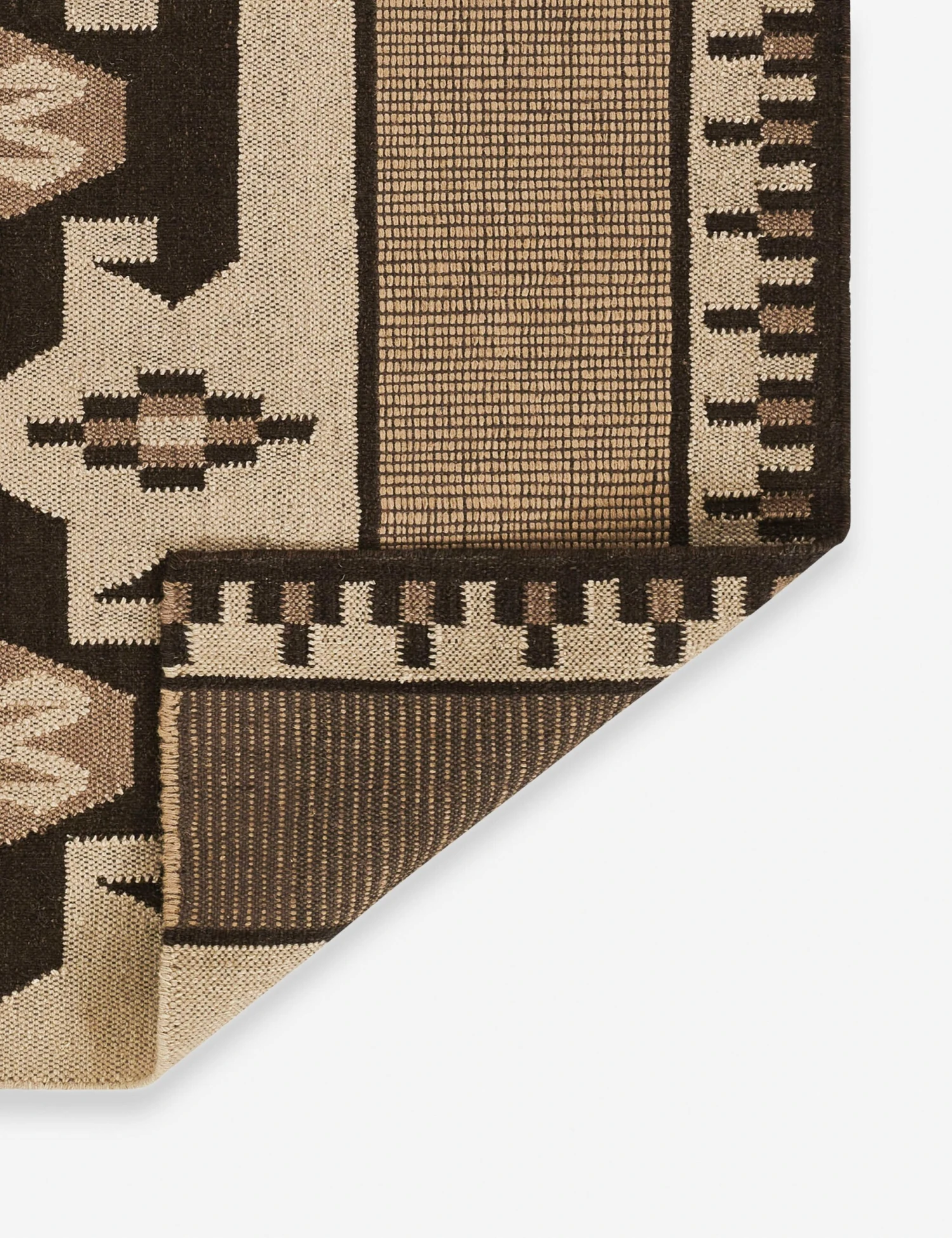 The Crouse rug offers a bold base for a timeless interior. The traditional pattern features geometric motifs in a high-contrast palette set for impact. With its durable wool fibers and no-pile design, this flatweave rug works excellent in dining rooms or high-traffic living areas, laying depth and texture underfoot.