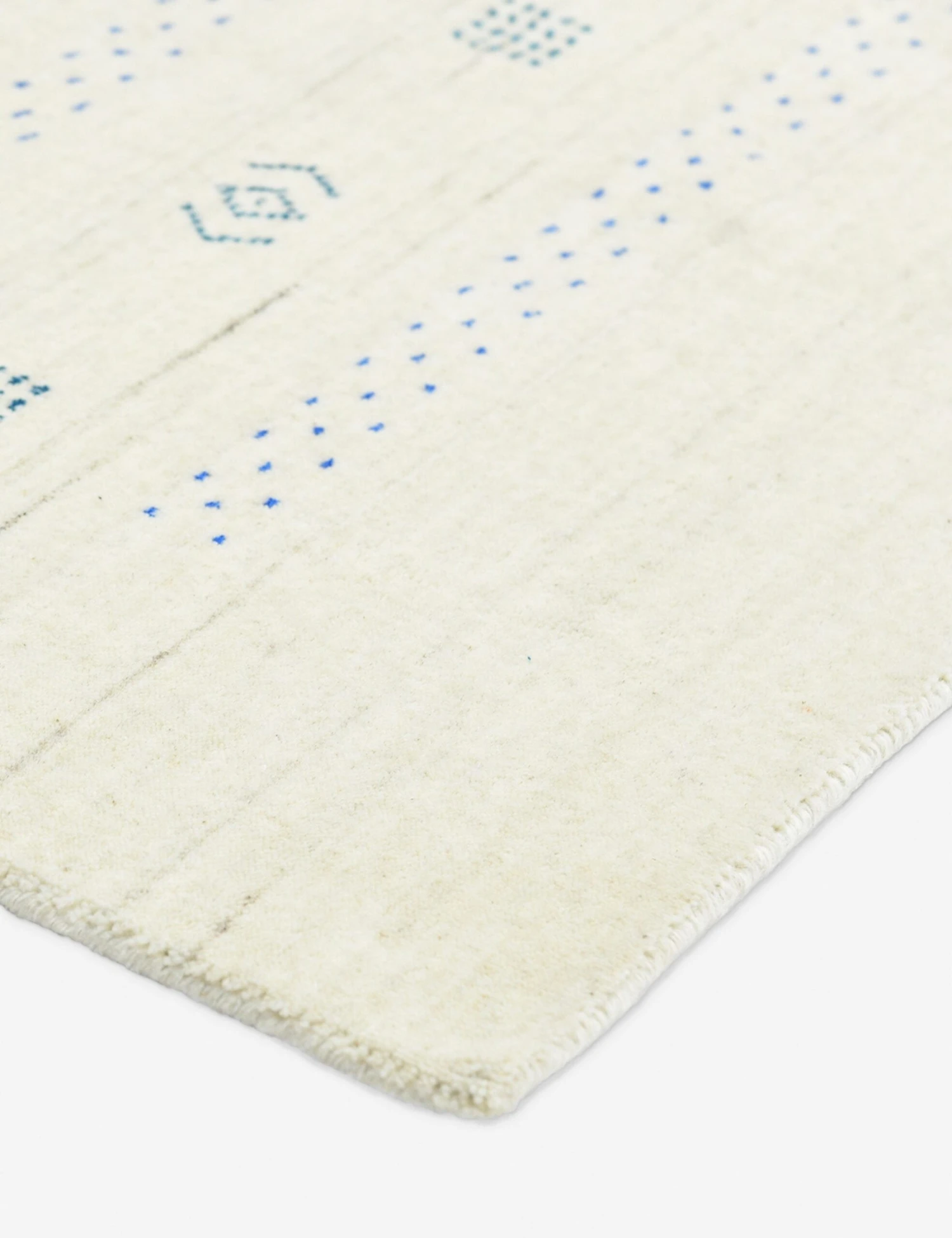 This woolen area rug has a supple, hand-loomed pile, bringing a cozy warmth to your home. Subtle color variations pair with simple geometric motifs inspired by Iranian Gabbeh rugs to bring a well-traveled look and feel to this handmade rug—ideal for a cozy family room or under your bed.