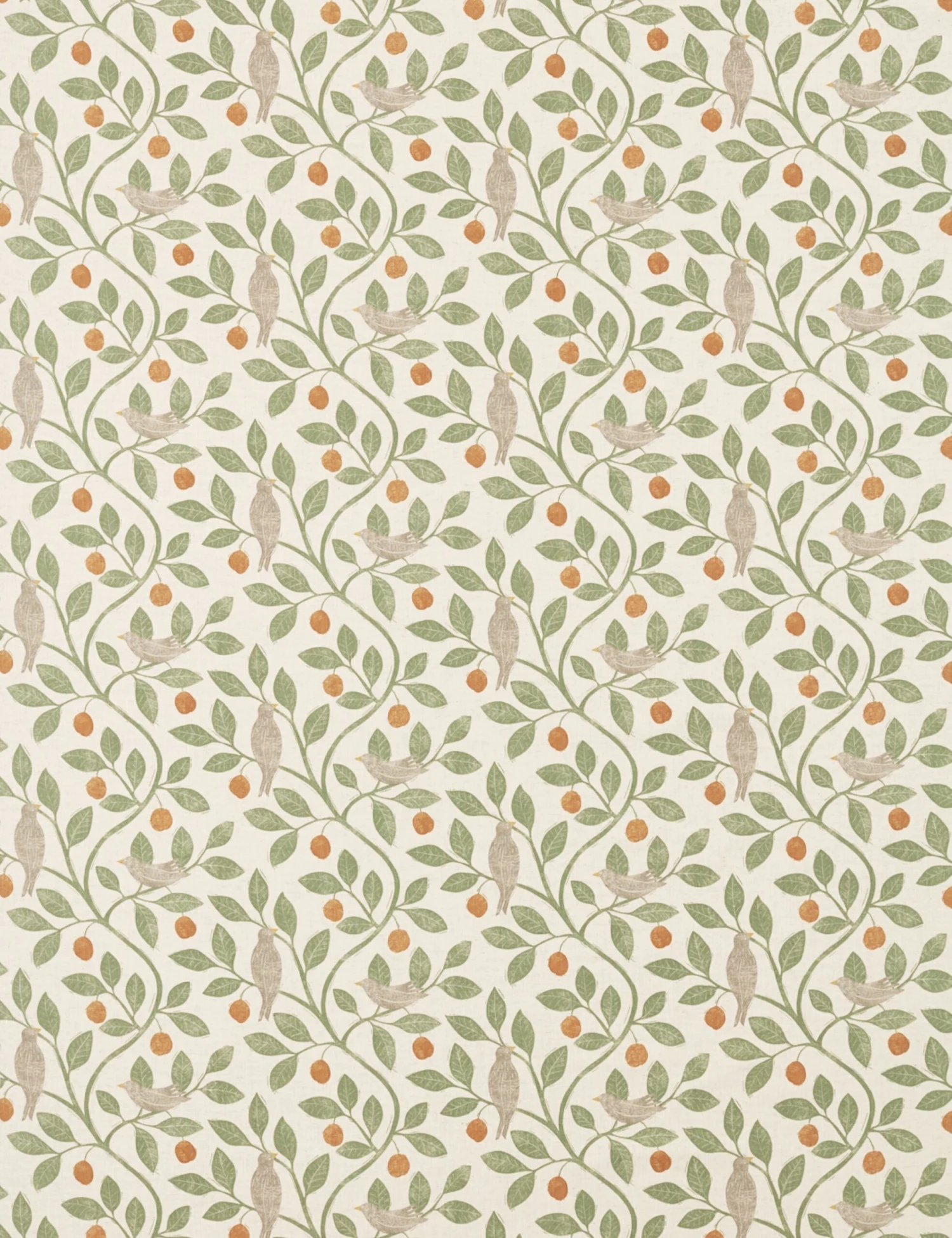 Stylized birds and winding botanicals create a polished pattern with a vintage touch in this textile design. The muted palette feels timeless and versatile, making it perfect for blending into a thoughtfully curated space. This medium-weight natural fiber weave makes it ideal for drapery or to layer a subtle pattern with pillows or soft furnishings.