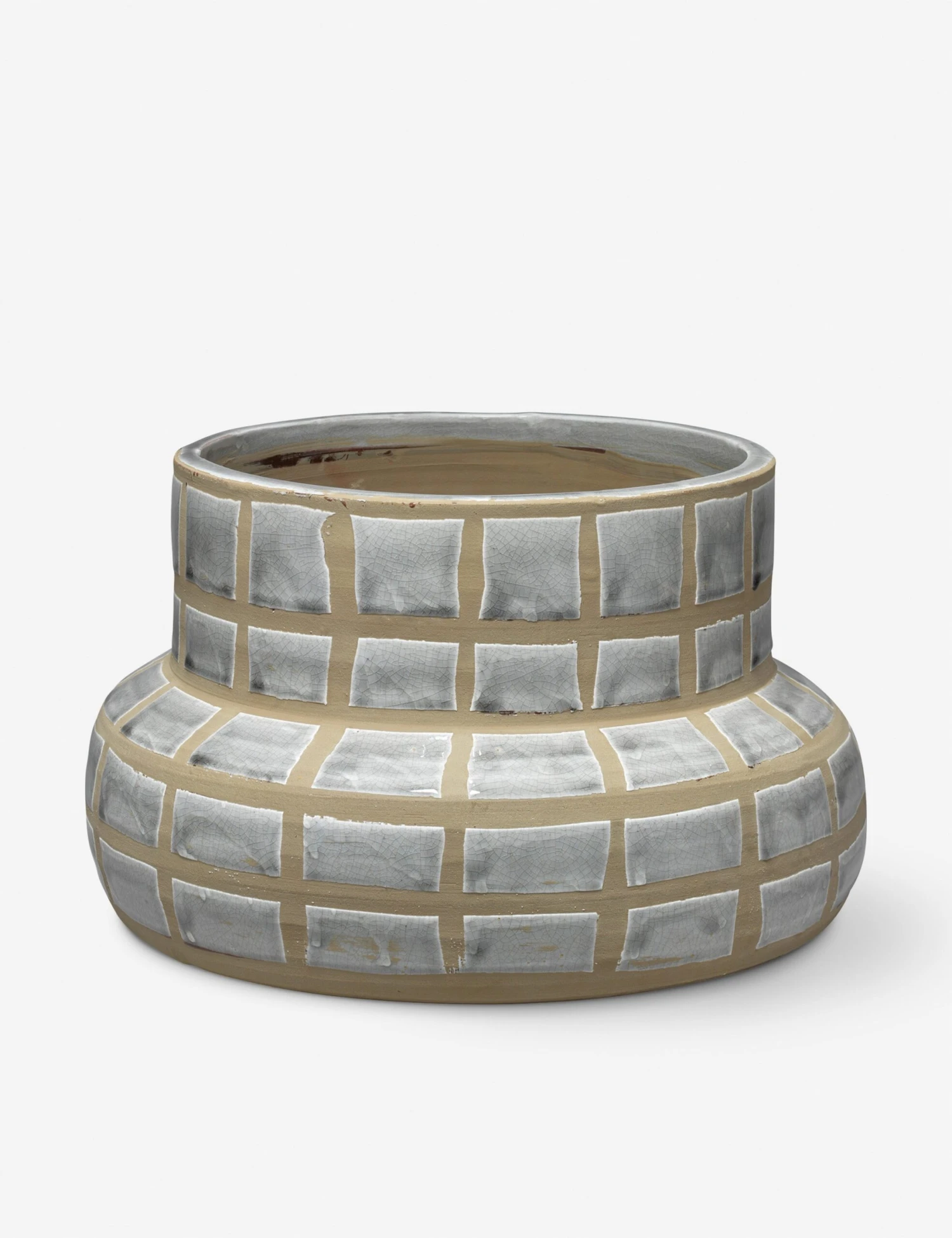 Looking for some fresh texture in your tabletop decor? This ceramic vase offers an elevating accent with a grounding touch. We love the tactile contrast of the finish with its organic array of glazed panels—perfect for layering visual interest into a modern living space.