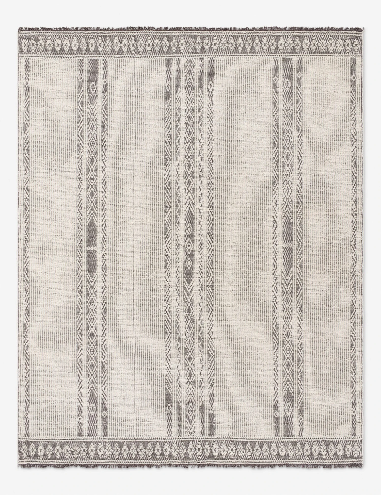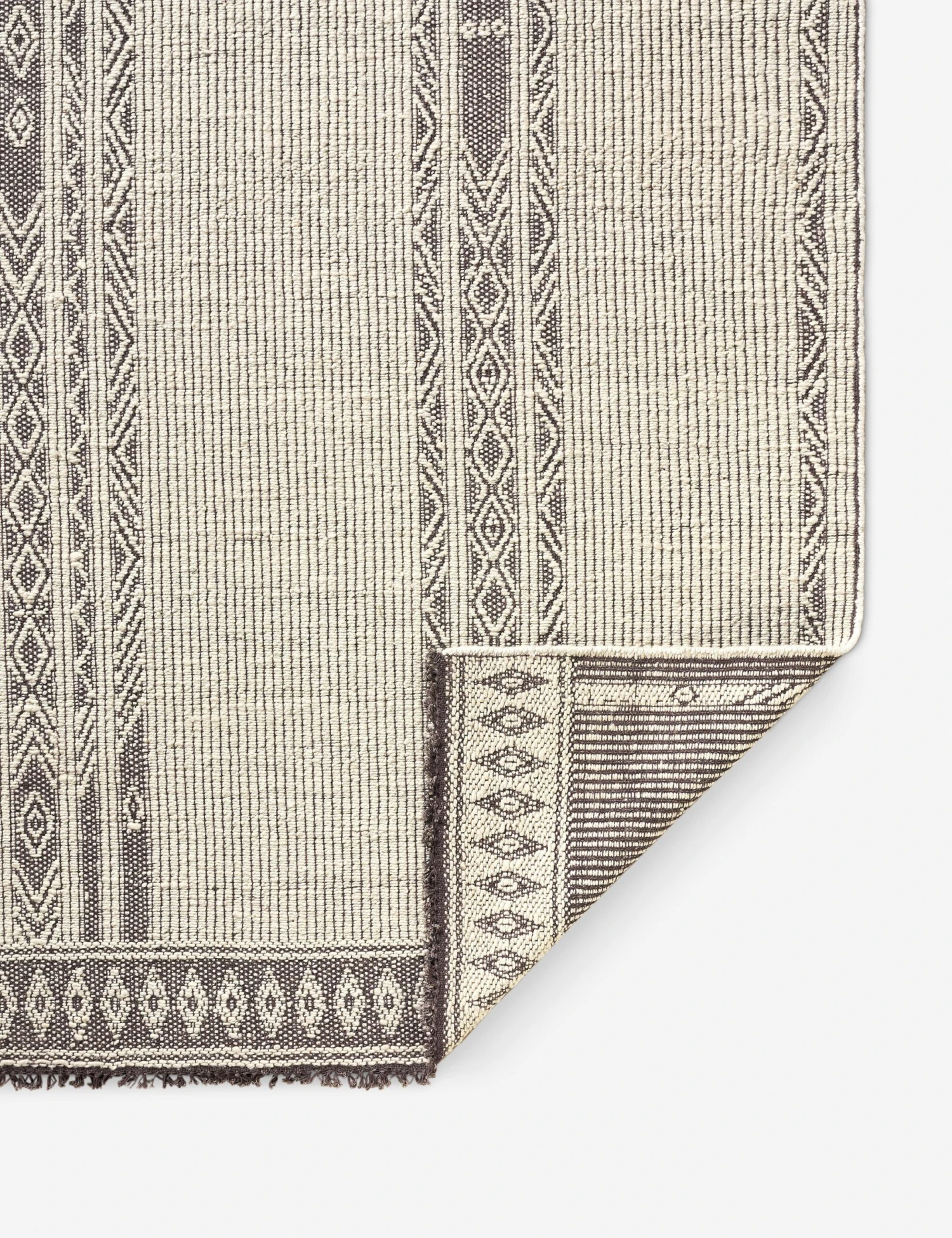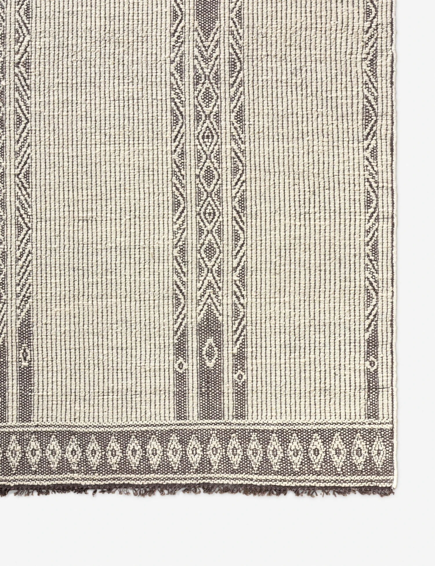 Underpin your space with a traveled air. The Delgado rug features a striped design with geometric details and a subtle fringe for a laid-back touch. The low woolen tread of this handwoven rug offers the perfect foundation for a dining room or high-traffic space.