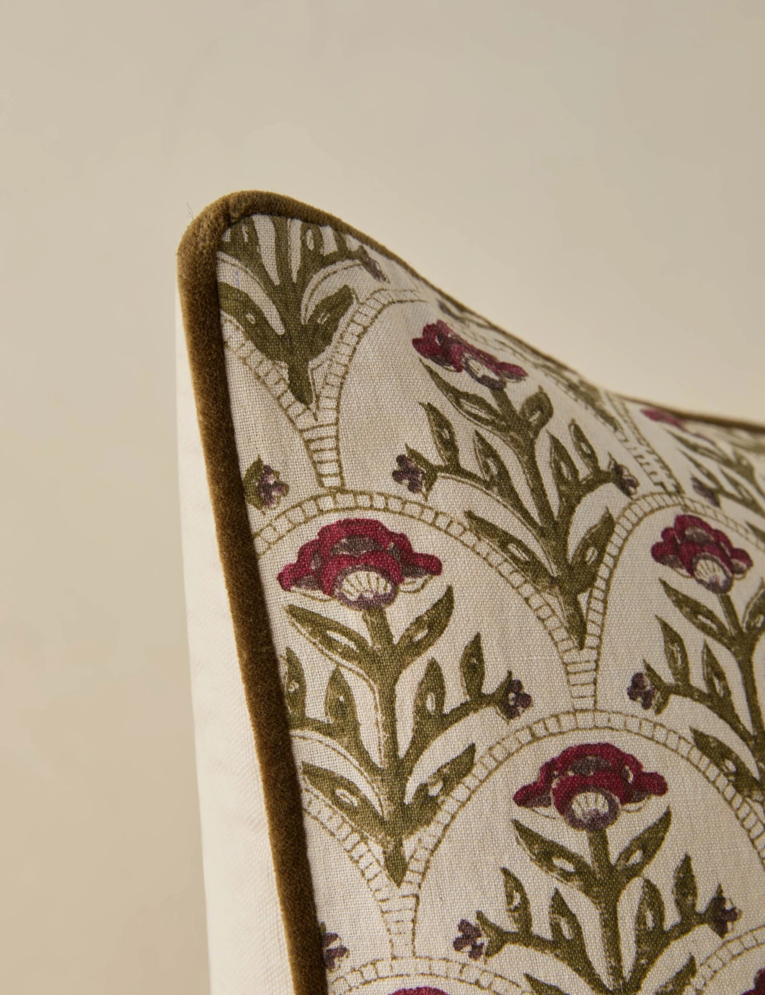 Is your edit feeling flat? Pop in our Dov pillow. An Art Deco pattern underpins the floral print, offering charm and sophistication in equal measure. We love this decorative pillow for an elevated living space where vintage touches enrich the curation.