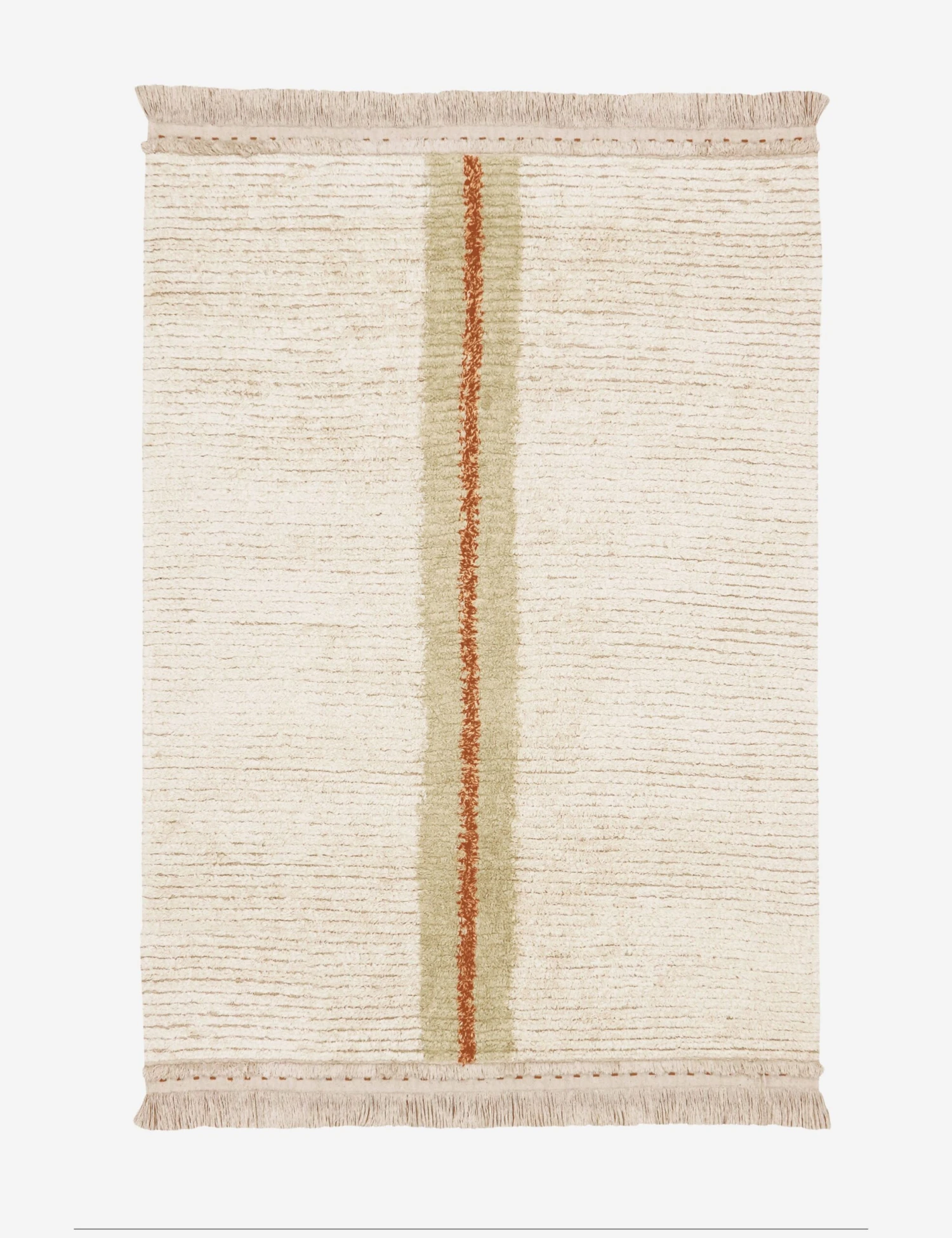 Lorena Canals brings the durability and softness of wool to a patented washable design for a luxurious, easy-care rug. Whether you go for bold or flip it over for neutral ground, this reversible rug sets a versatile foundation with a thick fringe for added texture. Enjoy the plush natural touch underfoot and launder again and again for always fresh style.
