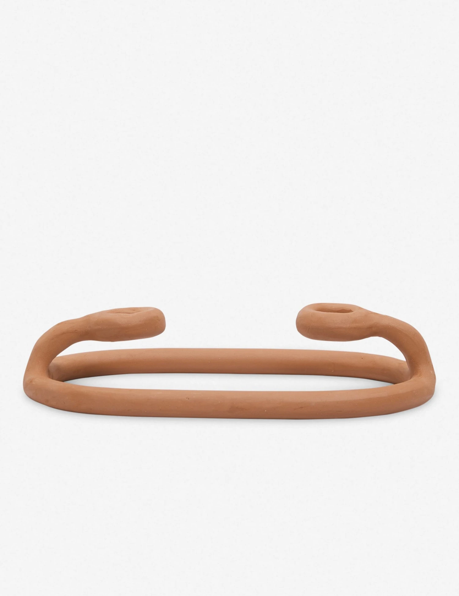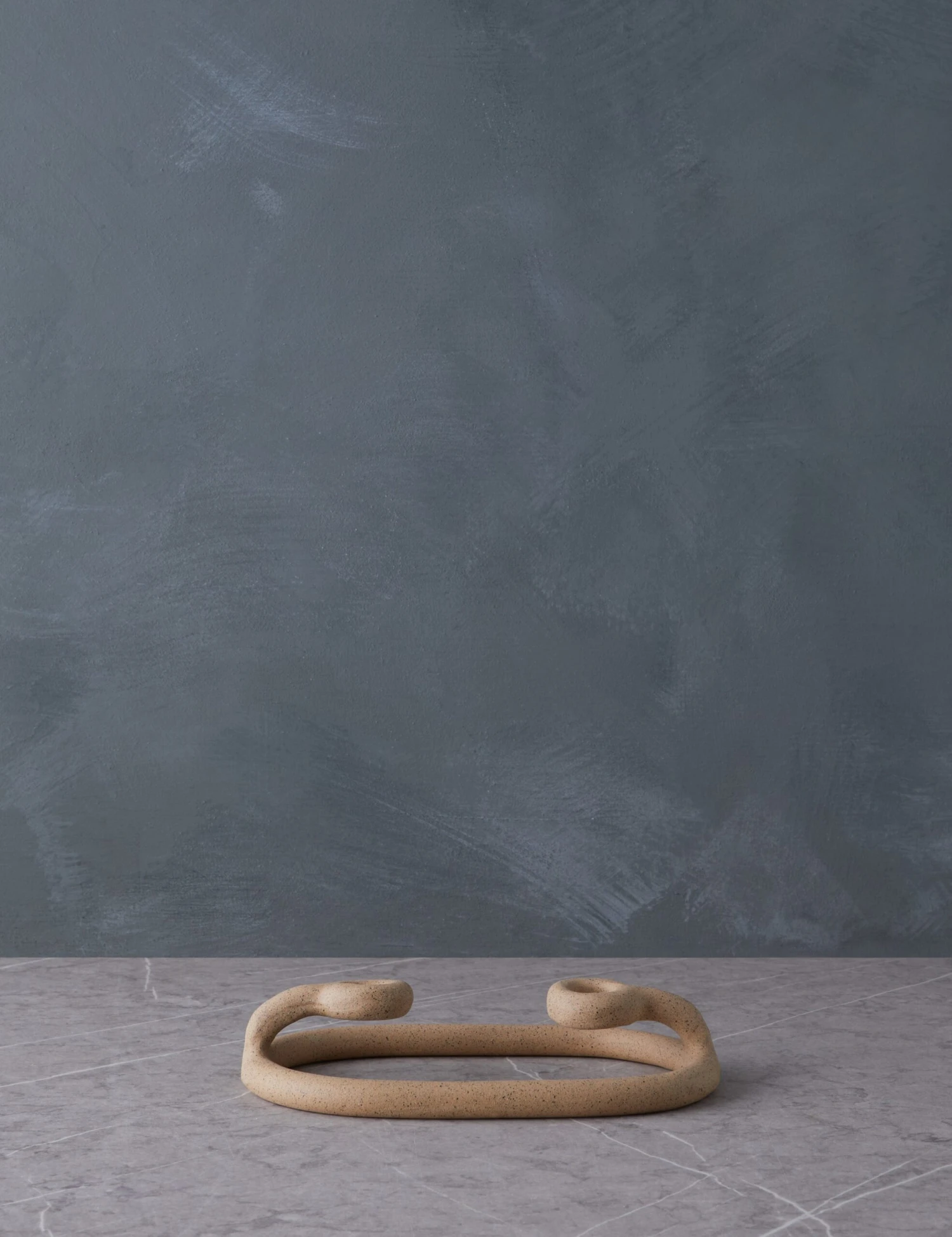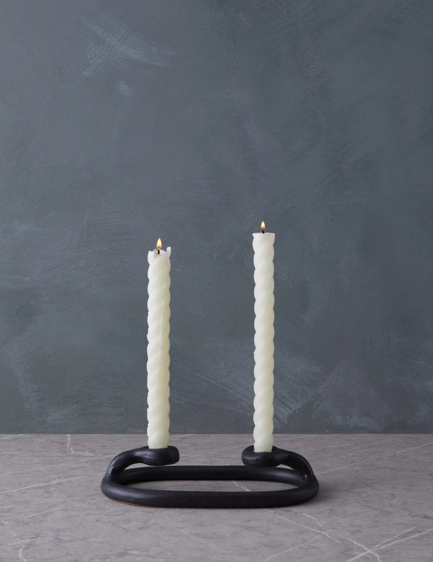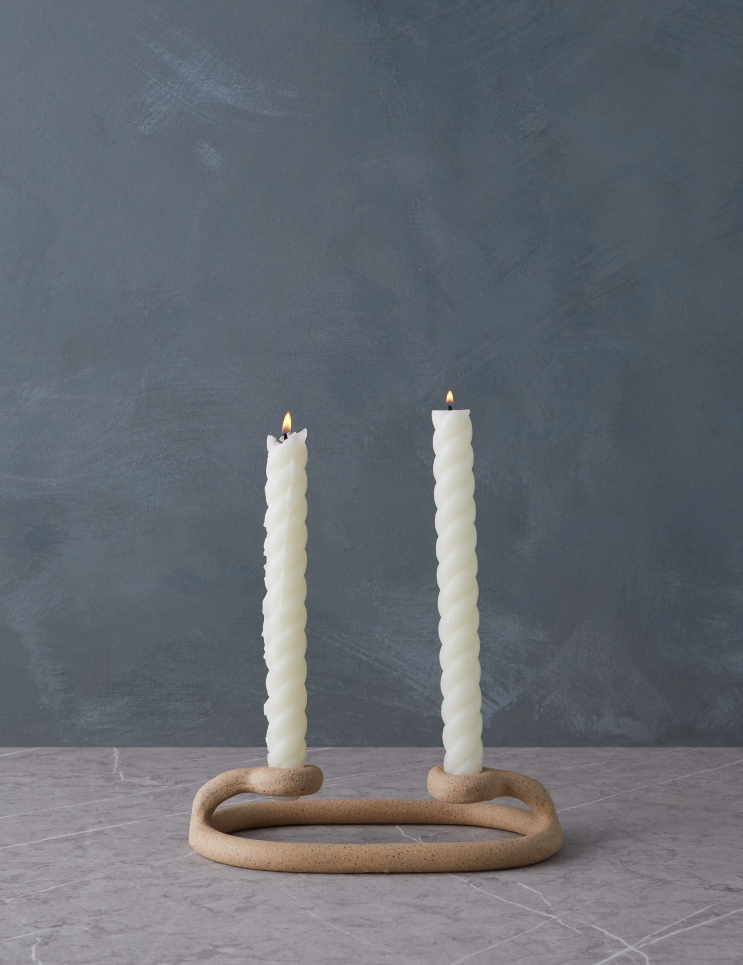 Simple with elements of modern style, this dual candlestick holder keeps a low profile with a matte stoneware finish and a floating design. As a decorative candle holder or as your dinner table centerpiece, it brings versatile, organic style into the mix.