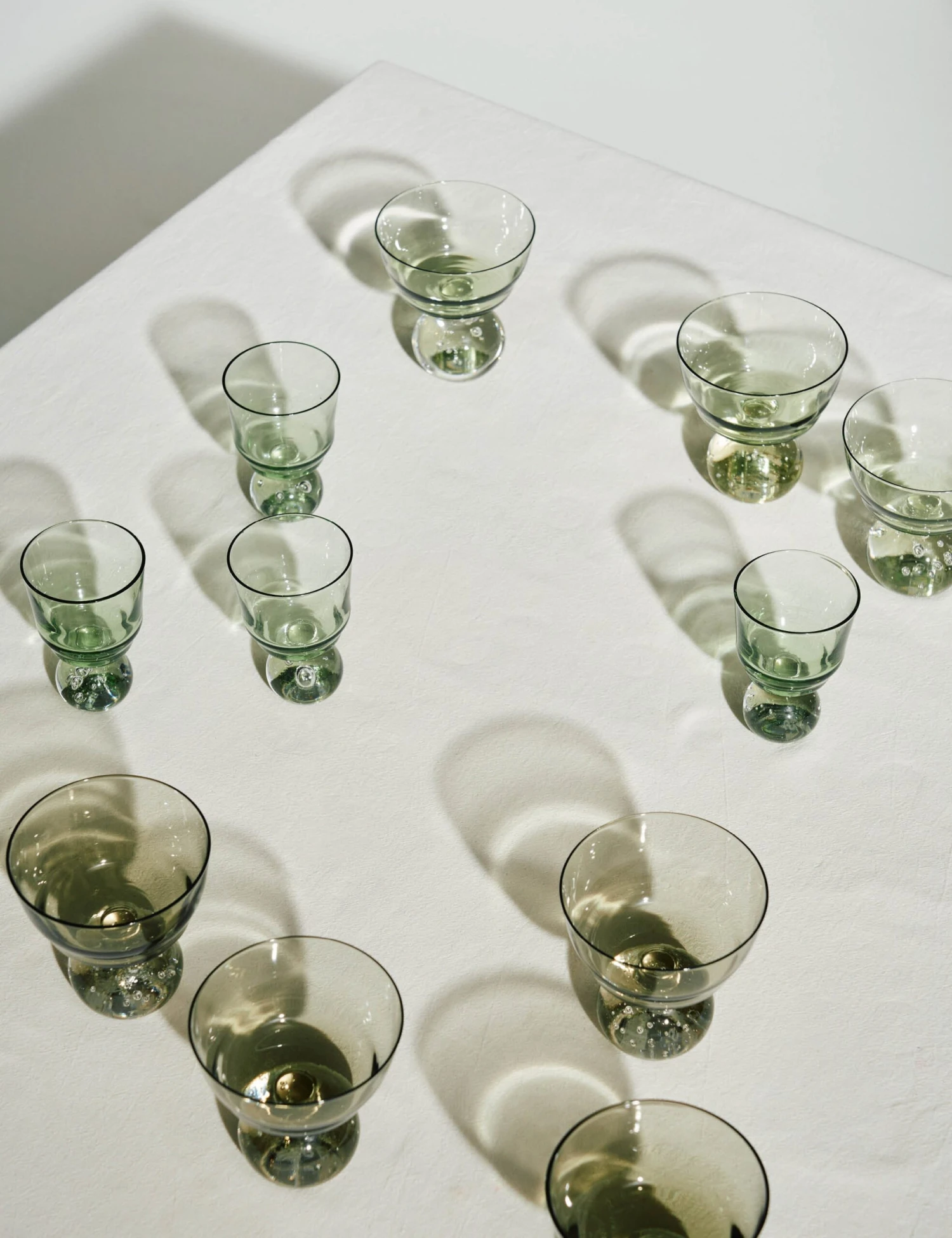 Bela Silva’s finely honed eye is shaped by a career that spans continents and creative disciplines, yet always finds its roots in the delightfully unexpected. In this glassware collection for Serax, she brings a playful edge to hand-blown forms, balancing precise lines with organic curves and effervescent bubbling. Each glass brings artful appeal to the table, elevating any pour and every occasion.