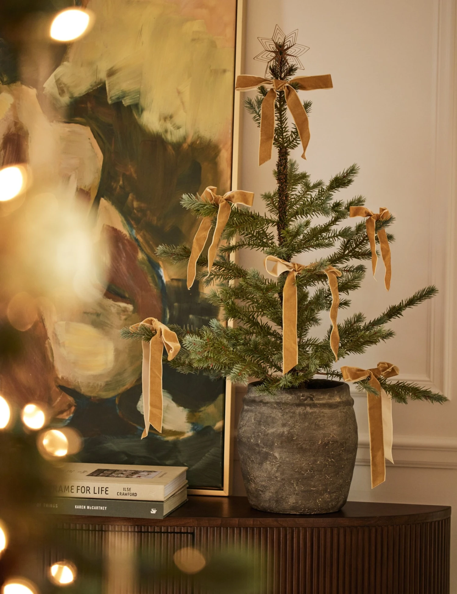 Add the texture of the forest to your decor with this faux spruce tree. The tree is over 3 feet tall, which makes it a versatile accent for an entryway or living space, whether it’s trimmed or bare. The burlap base adds a rustic touch to warm your season this year and next.