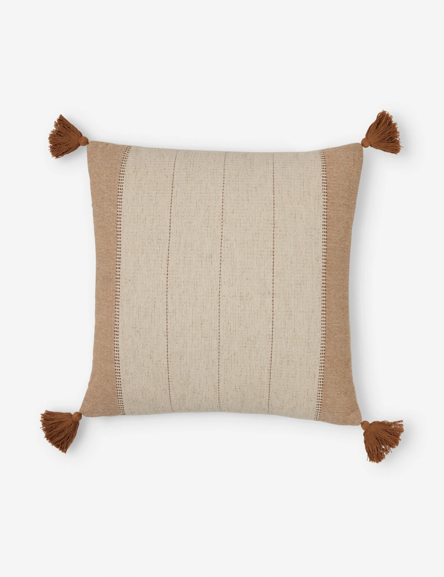 Pom tassels bring a stylish flair to this earth-toned accent pillow. We love the textural weave and distinctive profile for a finishing touch on your bed or sofa. The neutral coloring is perfect for mixing and matching with other throw pillows.