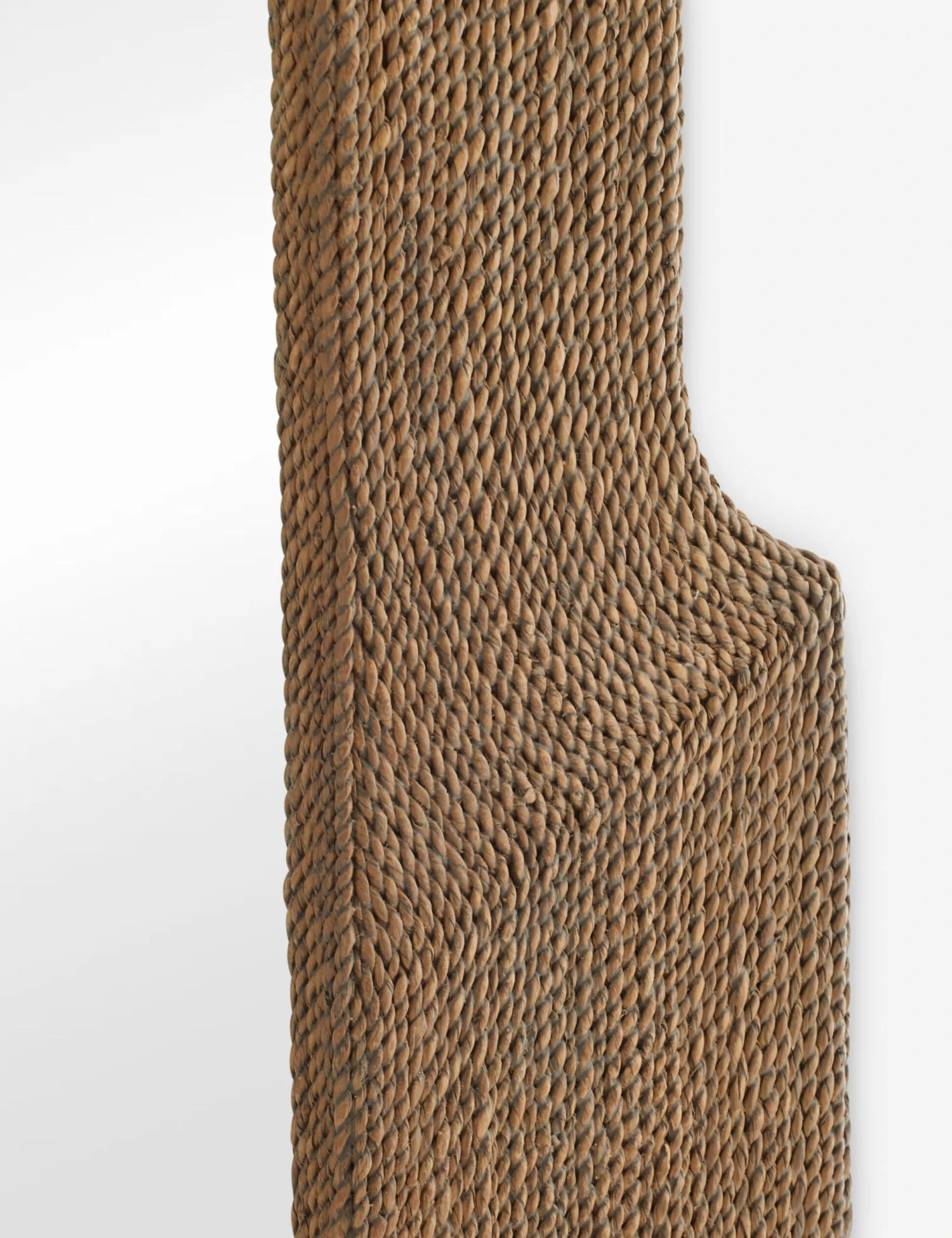 Bold form meets natural texture in the Freeport mirror. Wrapped in abaca rope and shaped with arch-cut corners, this piece brings warm tactility and definition to the wall. Whether styled in an entryway or living space, this accent mirror is the perfect layering piece for an organic or coastal aesthetic.